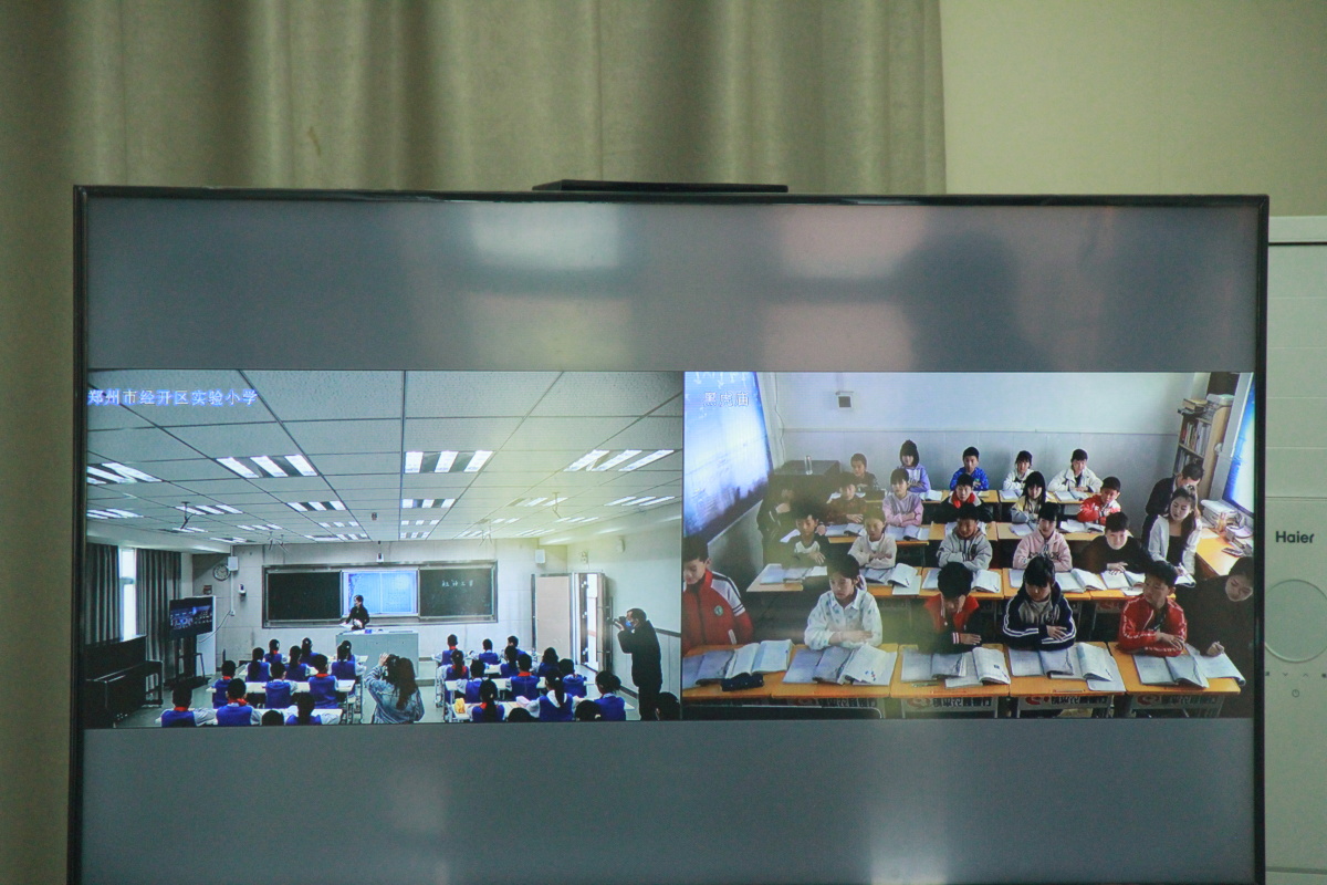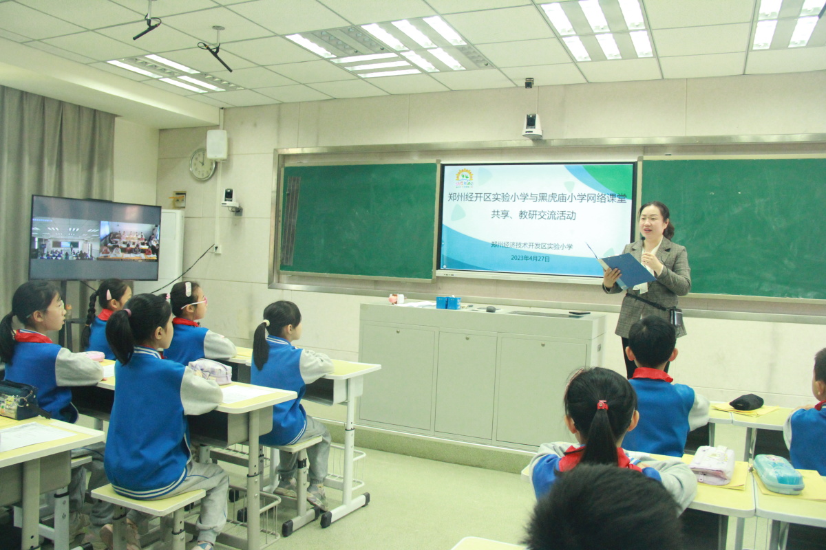 在郑州经开区教文体局的大力支持下,为发挥名师引领作用,加强校际教育教学交流,使城乡教育资源优势互补,促进教育均衡发展,4月27日,经开区实验小学和黑虎庙小学的师生再次跨越时空,相聚云端,借助网络智能交互平台,开展网络课堂共享和共同教研交流活动,大力开展“互联网+教学”智慧课堂常态化的实践与探索。