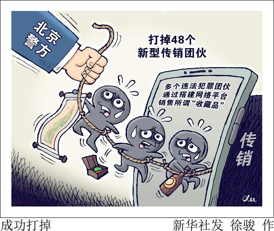 新华社北京5月13日电(记者鲁畅、吴文诩)“5·15”全国公安机关打击和防范经济犯罪宣传日来临之际,北京警方通报去年以来针对新型传销团伙打击情况:多个违法犯罪团伙通过搭建网络平台销售所谓“收藏品”,并通过招募会员,循环售卖炒至高价,造成“底层会员”承担高额损失,已有48个团伙被打掉。