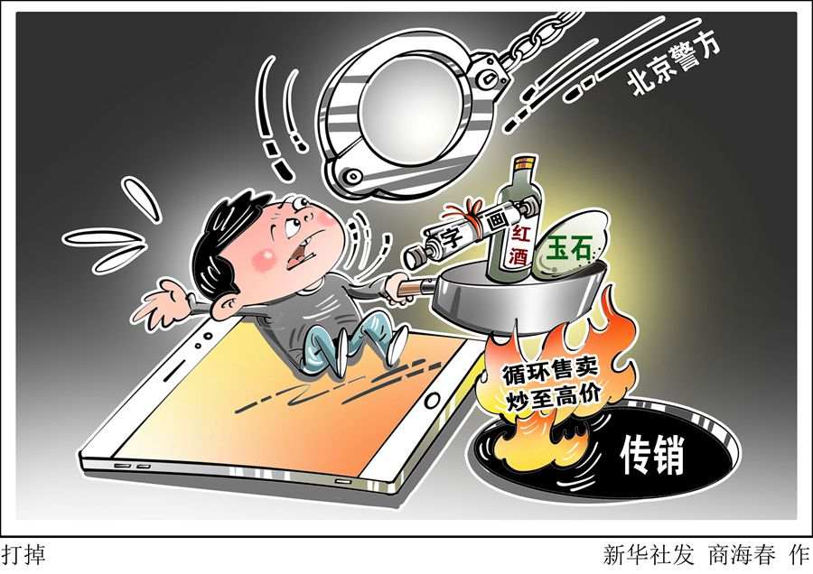 北京市公安局经侦总队六支队支队长杨立华13日介绍,去年以来,北京市出现多起涉玉石、字画、红酒等收藏品抢购转售类警情。警方侦查发现,犯罪团伙利用微信公众号、App等搭建网络交易平台,以销售玉石、字画、红酒等难以确定市场价格的艺术品、收藏品名义,通过扫码等方式招募会员,并依据加入顺序确定会员上下级关系。会员按照标价购买商品后,次日向平台缴纳一定费用,即可将所购商品在平台继续加价销售给下级会员,以此循环、反复售卖。