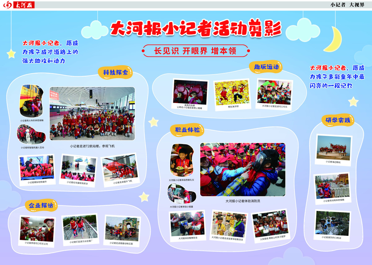 大河报各市县小记者站(郑州除外)面向各学校选拔招收优秀在校生加入大河报小记者队伍,旨在落实国家“双减”政策,通过采访培训与素质拓展、国内外游学研学和社会实践活动,提升青少年的综合素质能力,提高观察与写作水平、锻炼沟通表达能力、启发思维开阔视野,帮助广大中小学生健康快乐成长。