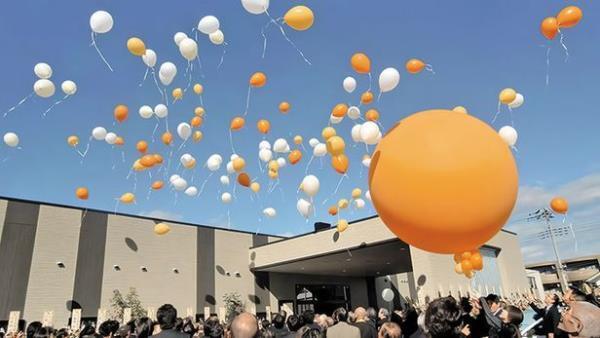 日本的一场葬礼上,向天空放飞气球的场面。右下角最大的气球里装有死者火化后的骨灰。(图源:《朝鲜日报》报道配图)