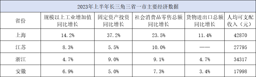 7月30日,安徽省统计局发布2023年上半年安徽经济运行数据,至此,长三角三省一市今年上半年的GDP数据已全部发布。