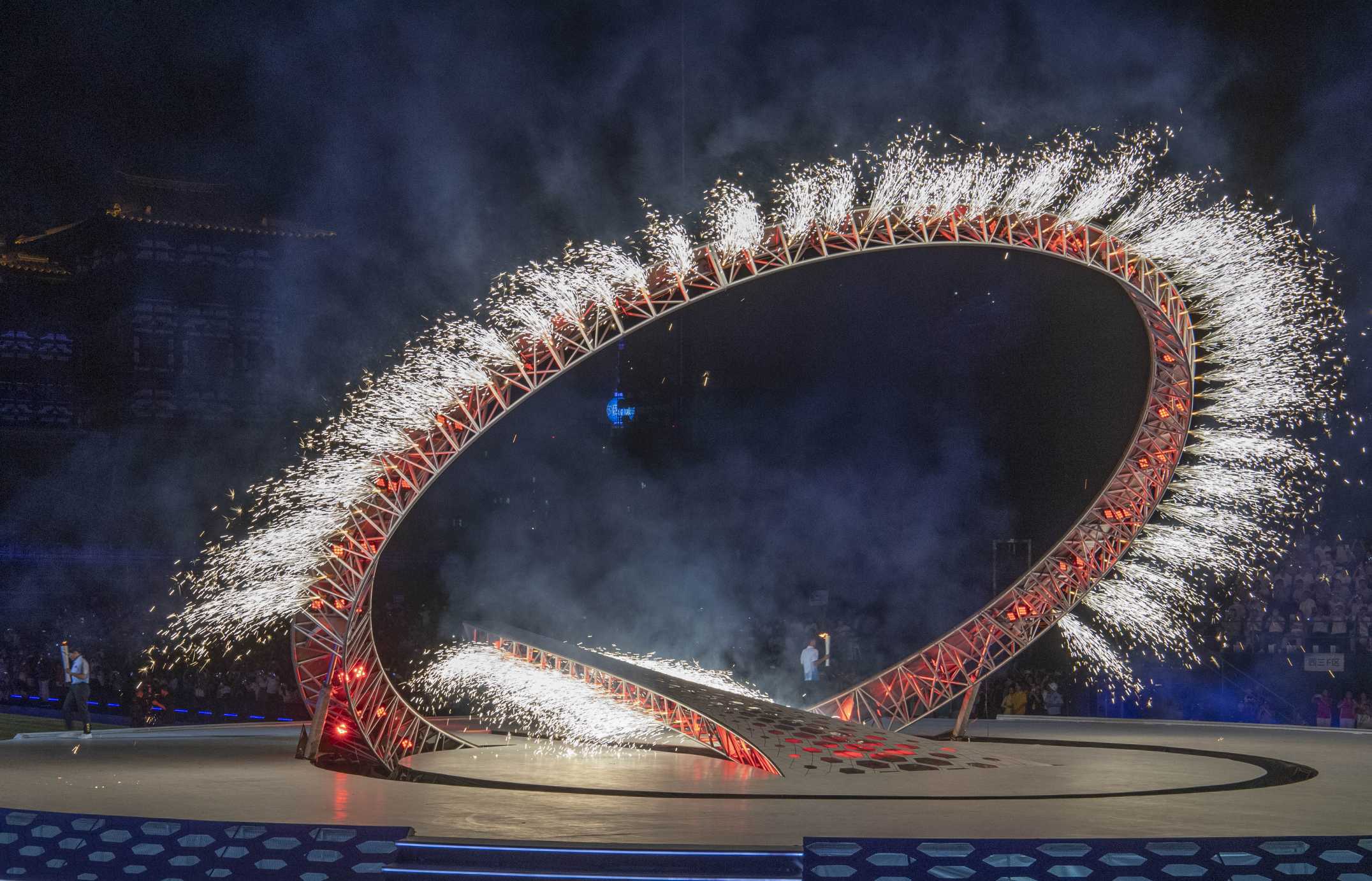 8月18日晚,河南省第十四届运动会暨第八届残疾人运动会在洛阳正式拉开帷幕,开幕式在隋唐洛阳城国家遗址公园应天门上演。