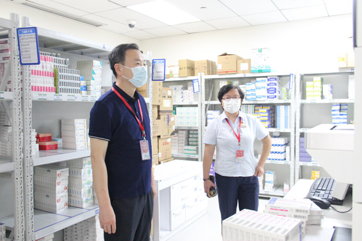 (校党委书记、校长任文杰在南开大学附属北辰医院药剂科察看。)