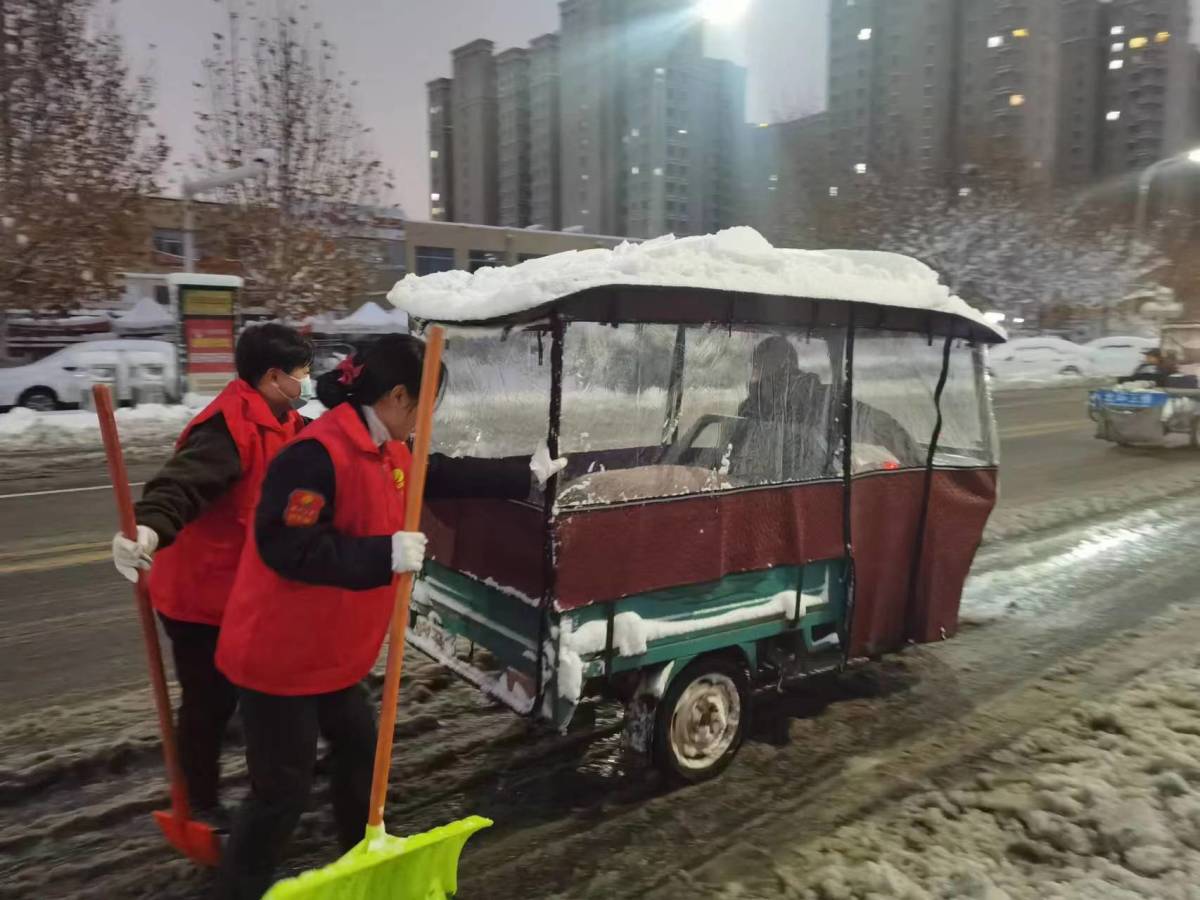 与此同时,郑州公交苏师傅党员志愿服务队已经在出发的路上,在早高峰到来之前,他们到各大站点开展志愿服务,引导市民乘车、清理站台积雪,提醒乘客注意安全。