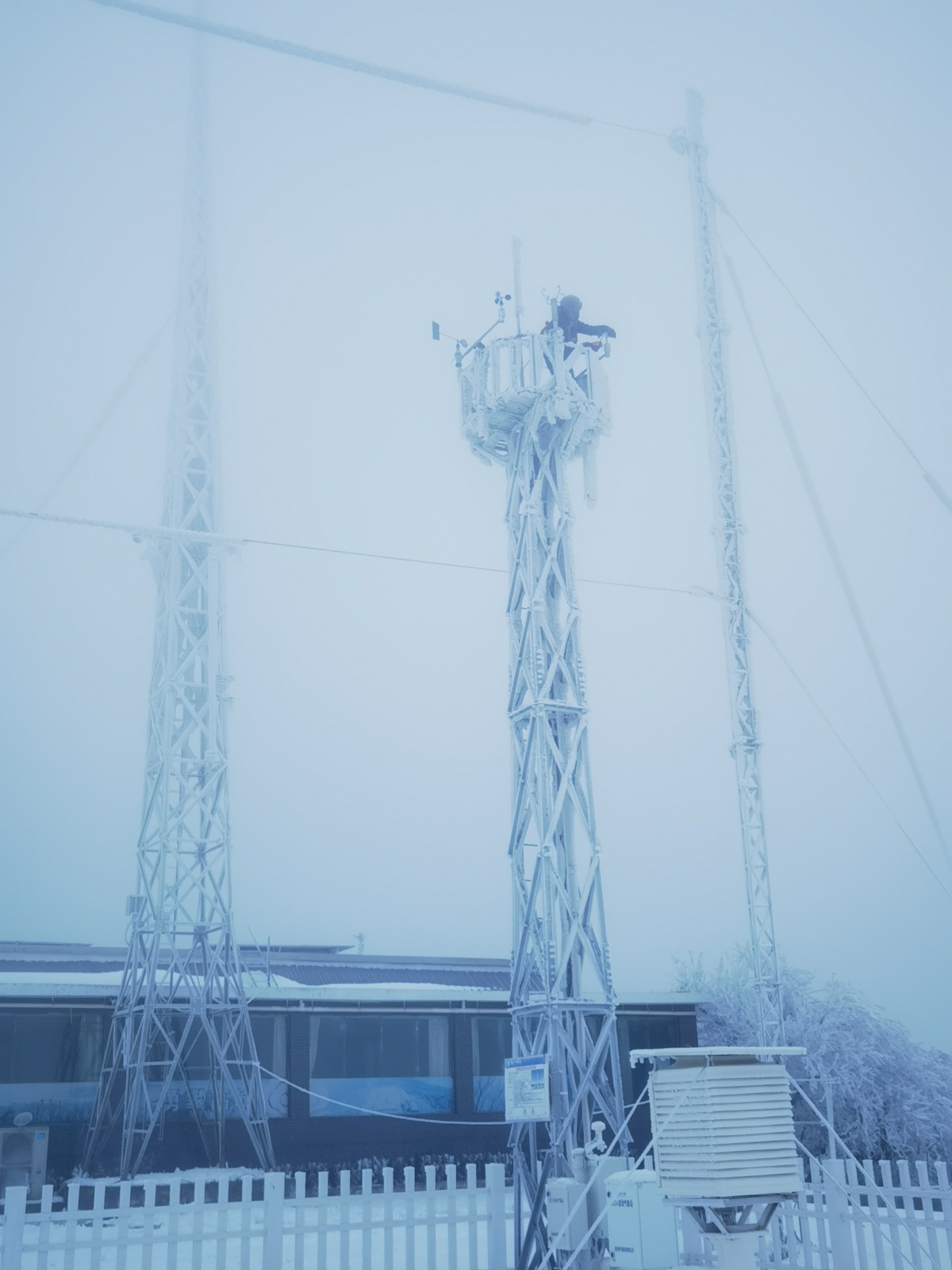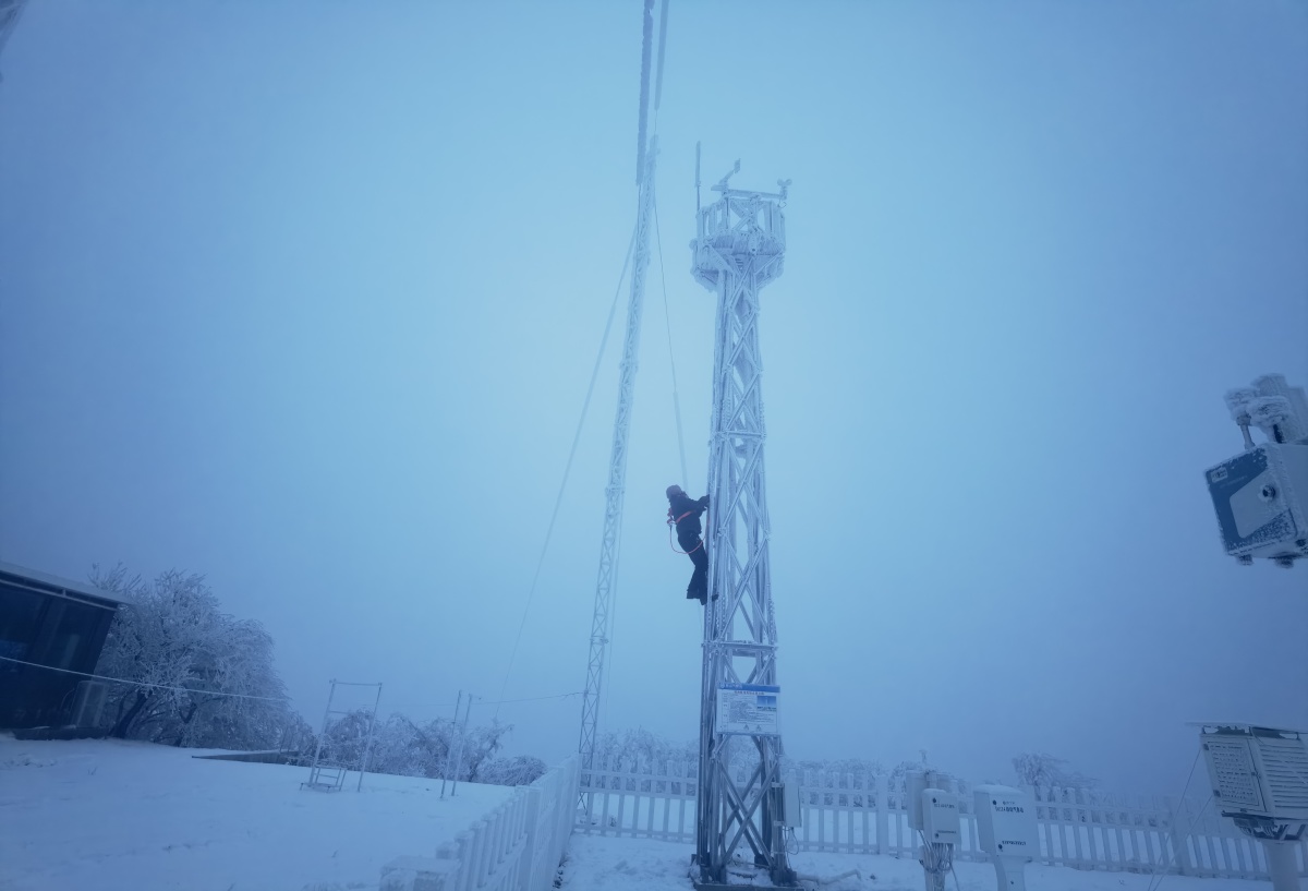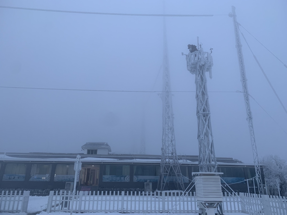 最近寒潮到来,观测塔上的设备经常被冻上,工作人员夜间也需要上去除冰。“因为我们晚间是轮流值班,前几天刚好轮到我了,凌晨4点半收到风塔被冻住了的信息后,我正准备出门,李灵道老师拦住了我,他怕我半夜爬塔没经验,不安全,非要替我去”。