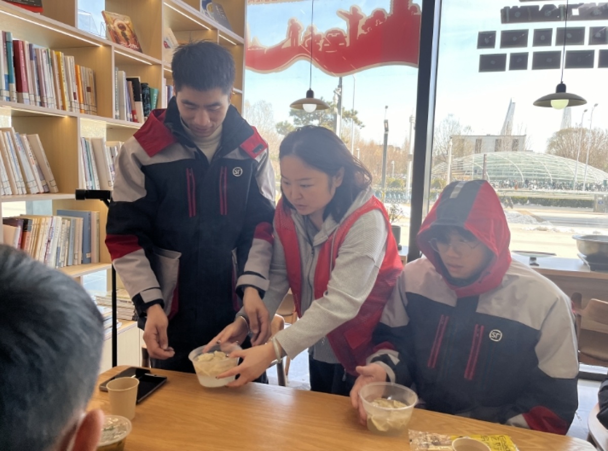 活动中,志愿者和社区工作人员齐聚一堂,分工协作,最后志愿者把一碗碗充满爱意的饺子送到环卫工人和快递小哥的手里,他们通常是在寒冷的冬天里辛勤工作,他们的付出和努力为城市的建设和发展做出了重要贡献。通过送上冬至的饺子,希望能够给他们带去一份温暖和关怀,让他们感受到社会的关爱和支持。
