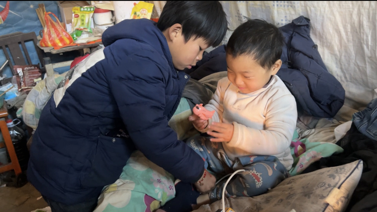 帮姐姐掖被子端饭,给弟弟喂饭擦身,小皓小小的肩膀上,有着超越同龄人的沉稳和担当。小皓的姐姐智力偏低,沟通困难,小皓却能耐着性子。弟弟尚年幼,小皓则心细如发,照顾仔细。年纪虽小,小皓却非常懂事,希望能帮助爸爸多做一些家务,让爸爸能歇一歇,“爸爸一个人,拉扯我们不容易。”