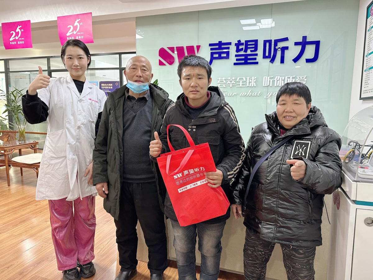 经过两天的等待,1月5日,欣欣的爸爸佩戴上了订制的助听器。“以后我会教爸爸听声音,每天说很多话给他听,逗他开心。”欣欣说道。