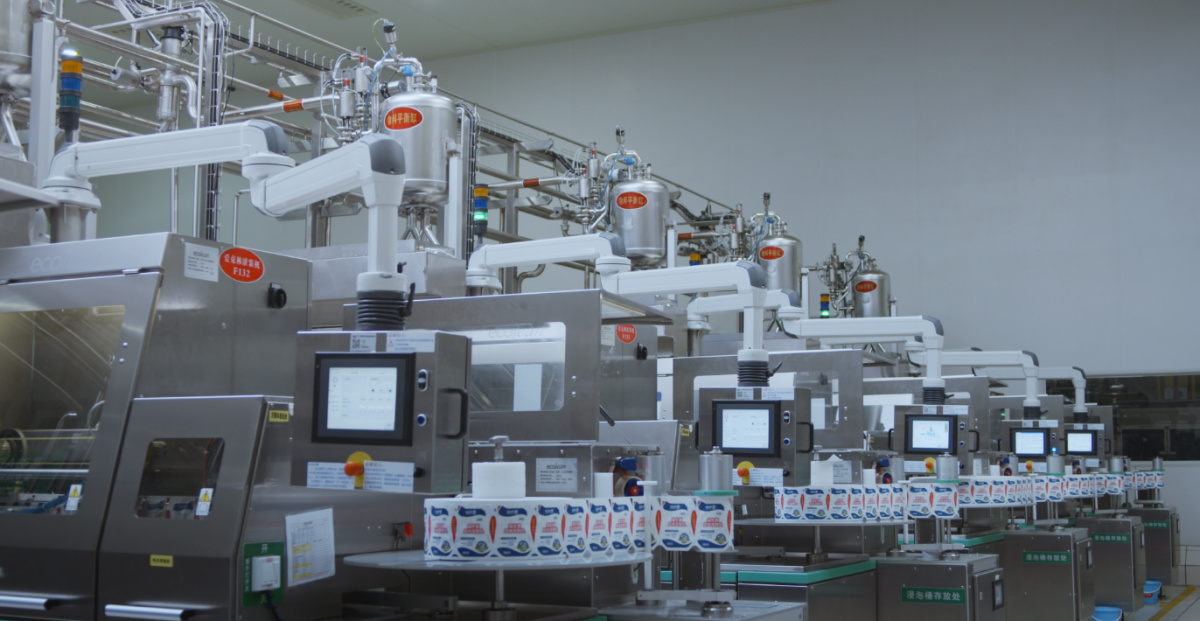 机器人“新员工”负责运送待检测的奶品,从冷库乘坐电梯到达指定检测机器,只需在手机上点一点;检测机器旁,智能机器手臂操作检测,只需要几秒钟,数据就录入系统中。