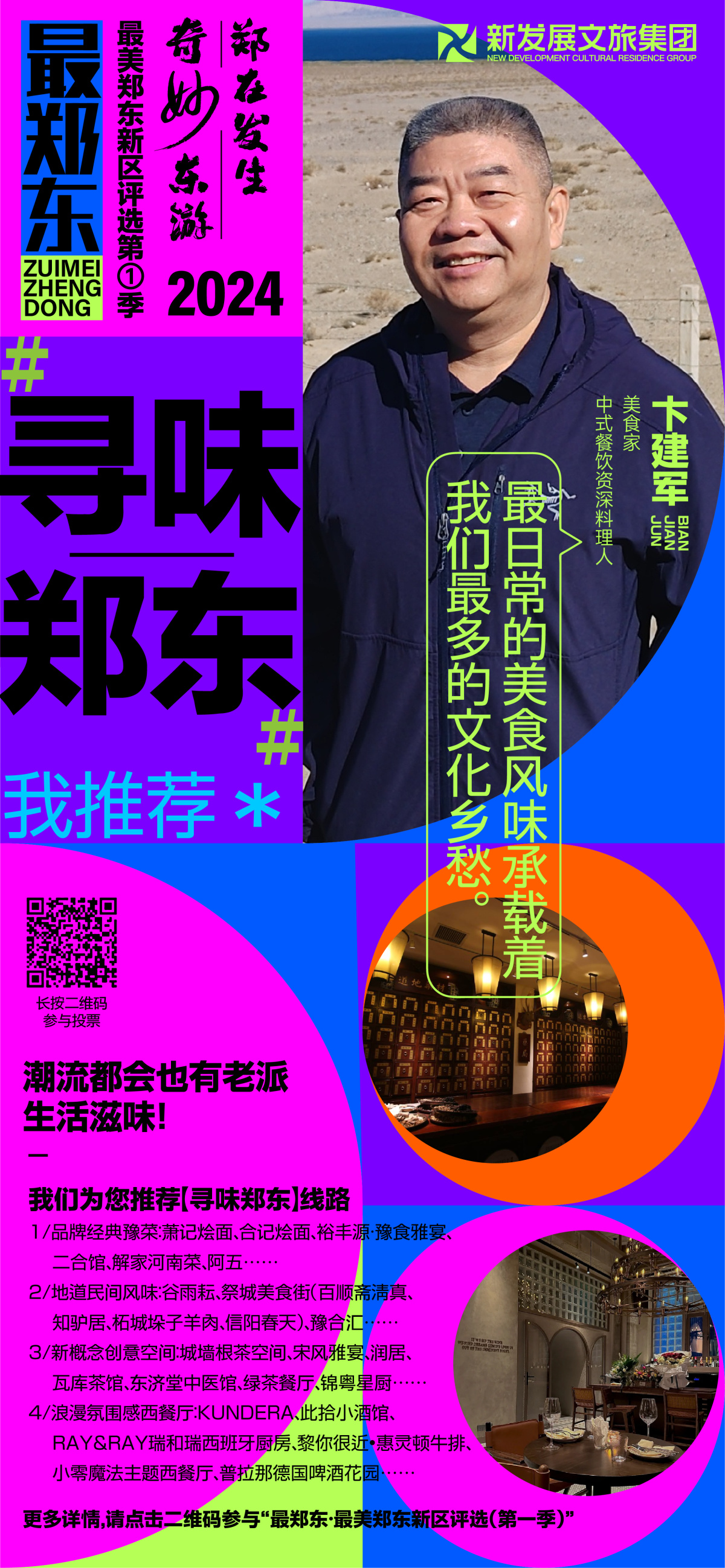 2月7日,郑东新区正式发起“奇妙东游·郑在发生|最郑东——最美郑东新区评选第①季”活动。今天,我们邀请了中式餐饮资深料理人、美食家卞建军,为您推荐“奇妙东游·郑在发生|最郑东”之[寻味郑东]线路图。