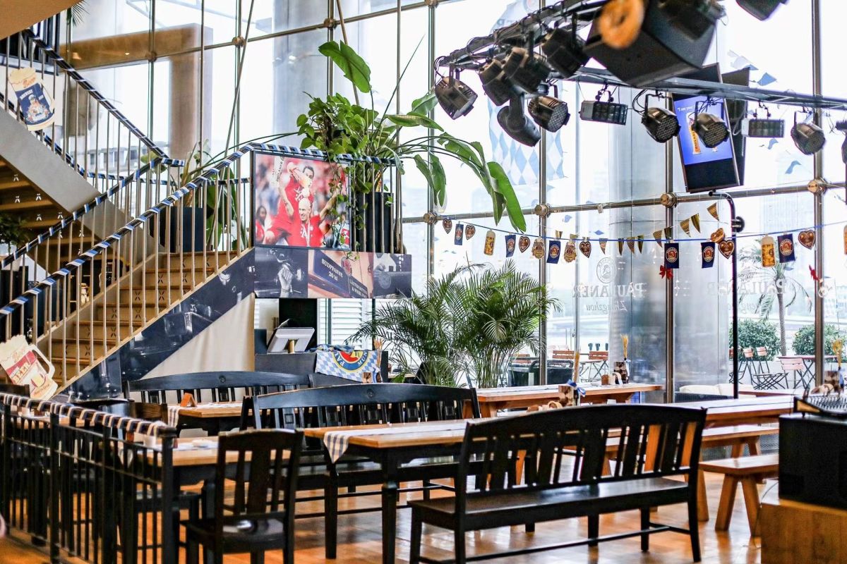 郑州普拉那德国啤酒花园是一家极具德国特色的花园餐厅,开业于2015年1月,位于郑州地标建筑玉米楼一层,和五星级万豪酒店相邻,面朝如意湖畔。包含内外场面积约为729平米,可以满足各种规格的亲朋小聚、婚庆宴会、商务宴请等。