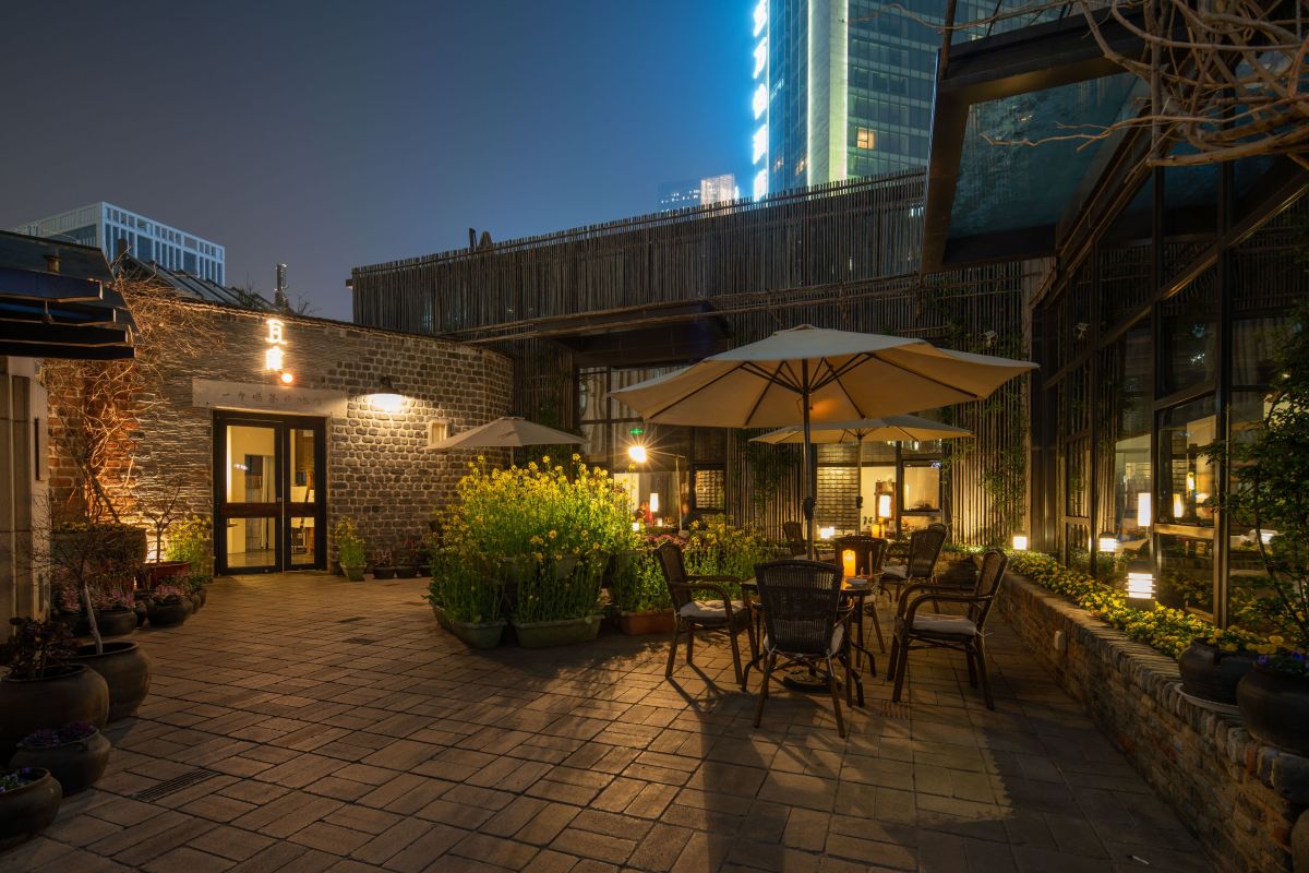 一共三层,一、二楼以宋式风格空间为主,三楼以欧式风格为主。总占地面积近3000平方米,内设36个雅间。整个空间以文人九雅:琴、棋、书、画、诗、酒、花、香、茶为载体,用现代手法还原了宋代文人自由的生活空间和放松的生活方式。
