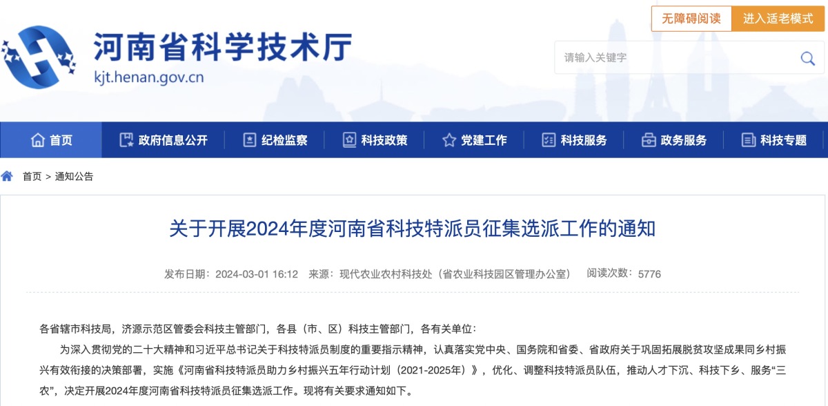 今年3月,省科技厅发文开展2024年度河南省科技特派员征集选派工作,征集对象包括个人科技特派员和产业科技特派员服务团,共约5000名左右。“先是由受援县指导本地受援对象发布科技需求,科技人员进行对接,由受援对象选择科技人员。”上述负责人告诉记者,后续再对申报人员材料进行审核择优选派。