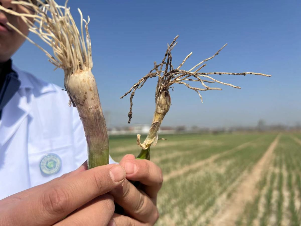 汪洋估计,大约四分之一的田块受到影响。“我们提取了根腐病的致病菌,鉴定出来主要是链格孢菌和细极链格孢菌两种致病真菌。”目前他针对这两种致病真菌,研发了相应的生防菌剂和复配药剂,在室内也进行了测试,效果良好,“未来将会以此为基础开发拌种剂,以解决大蒜根腐病和蒜田中早期的一些病虫害。”汪洋说。
