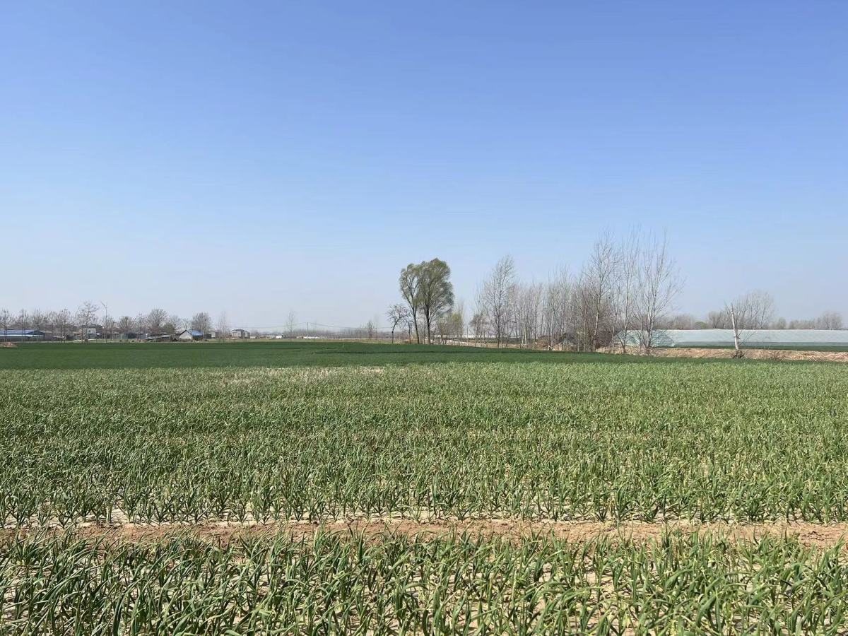 春分过后的兰考县许河乡,处处可见“植此青绿”的画卷,浅青的蒜地与翠绿的麦田错落在大地,一直延伸到蓝天边上。