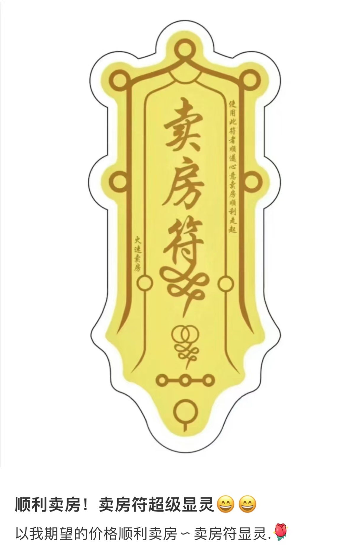 而各社交平台上还有很多二手房业主的卖房信息,“降价30万!房东甩卖自家房”“含泪出,精装修,拎包入住”,还有业主发“听说在小红书卖房很快哦”,或者贴上“卖房符”,写上“顺利卖房!”,就能引来一大批“感同身受”的业主。