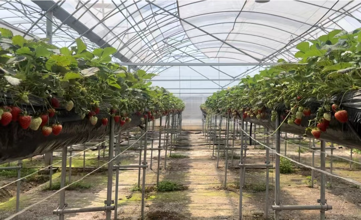 行程最后,记者跟随他们走进草莓大棚,果然如刘伟所说,绿海中泛着白花,熟透的草莓沿着枝条垂下,“这里有耐热品种、耐低温品种、早熟品种、观赏品种等等。”边走刘伟边介绍,不少品种都是他作为科技特派员引进的,比如香野、淡雪、梦之莹等。