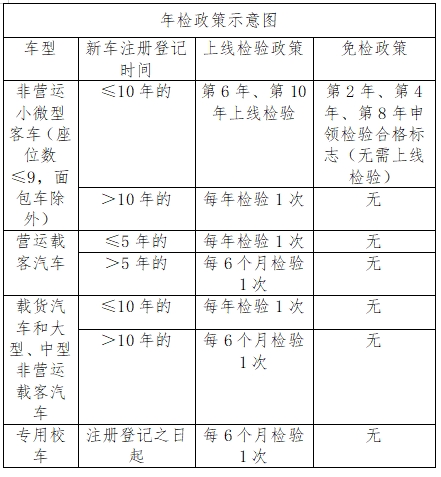 ③小型、微型非营运载客汽车10年以内每2年检验1次;其中第6年、第10年需上线检验1次,其他年份免于上线检验,10年以上的需每年上线检验1次;