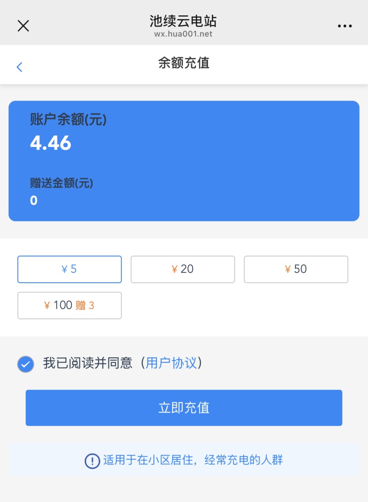 一旁刚充完电的李先生告诉记者,自己是来朋友家吃饭,正好到这里发现车子没剩多少电,就充值了5元把电动车放这里充电。“你看,我充值后只用了0.54元钱充电,余额还剩4.46元,上边提示可以在余额页面点击退费按钮进行退款,但是找了好几遍也没找到退费的按钮。”