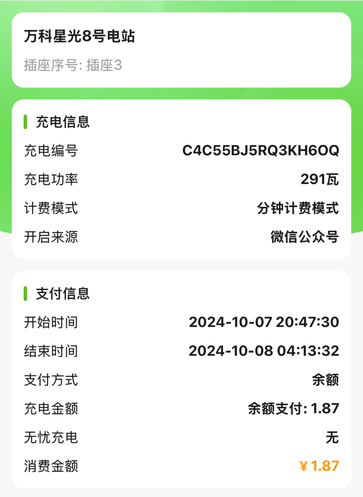 比较两次充电情况不难看出,其中一次充电时长比另一次多出9分钟的情况下,充电费用却足足少了0.67元。