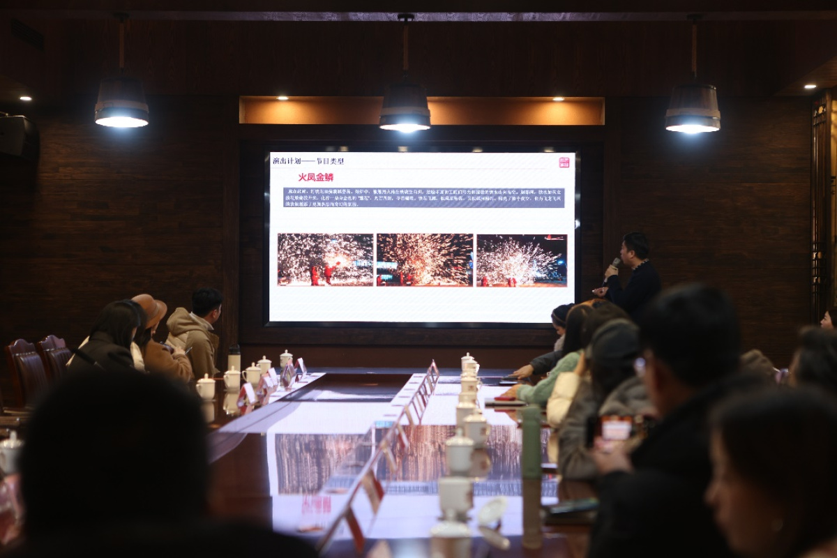 英歌舞、打铁花、非遗火壶、大型灯会、水上灯光秀......活动上,龙凤山古镇及君悦会文旅相关负责人介绍了龙凤山古镇春节庙会活动情况,邀请游客红红火火过大年。
