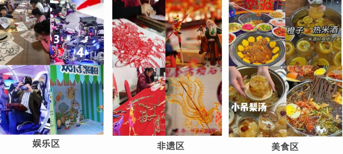 市集包括:非遗区、儿童娱乐区、餐饮区等