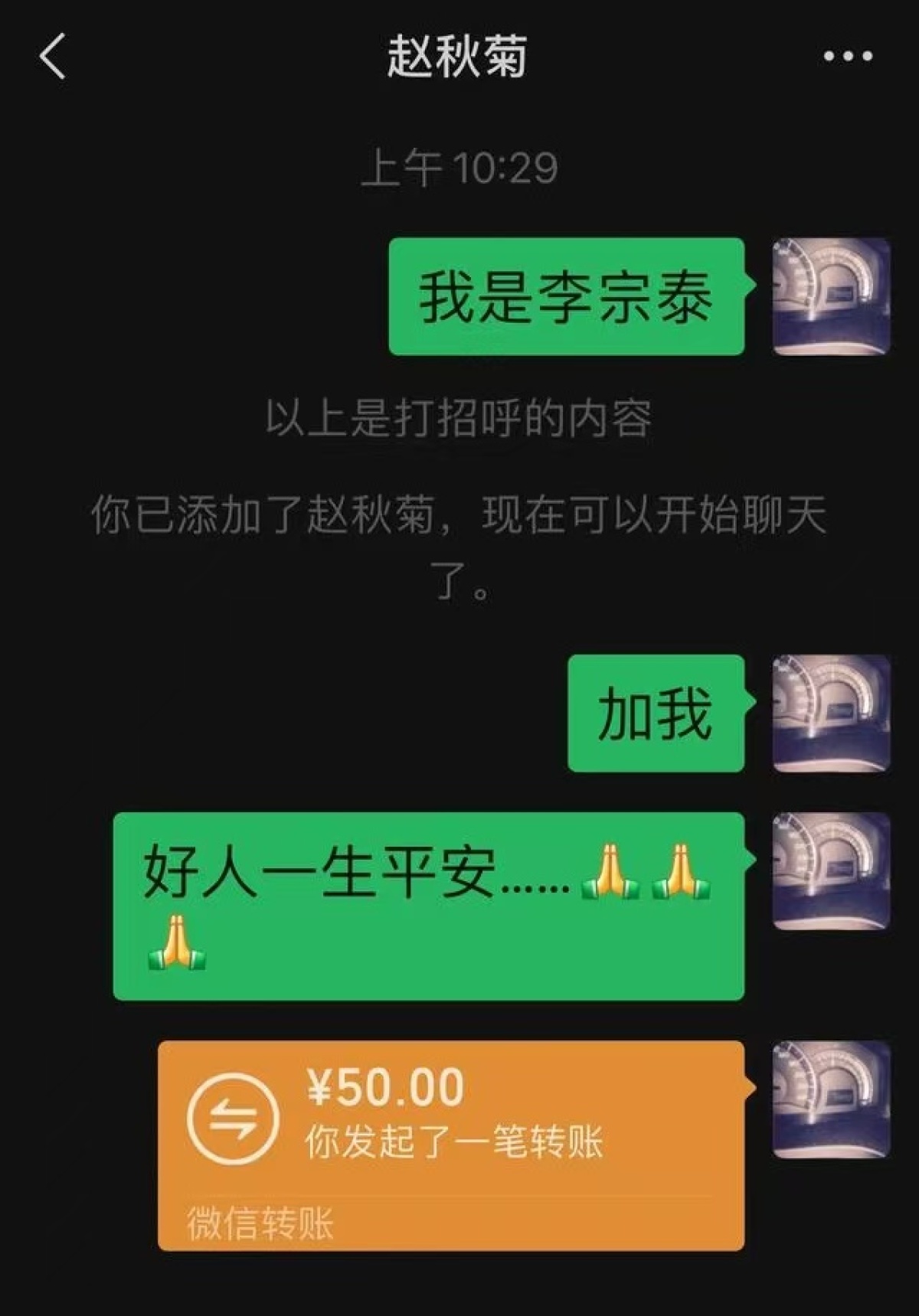 2月15日上午,看到大河报报道后,中国好人、河南省新时代文明宣讲师、焦作市道德模范提名奖获得者、博爱县孝悌之星、博爱县税务局干部陈宝霞十分感动。她通过大河报焦作运营中心总监李岩捐赠500元爱心款,委托转交给李坤朋亲人。