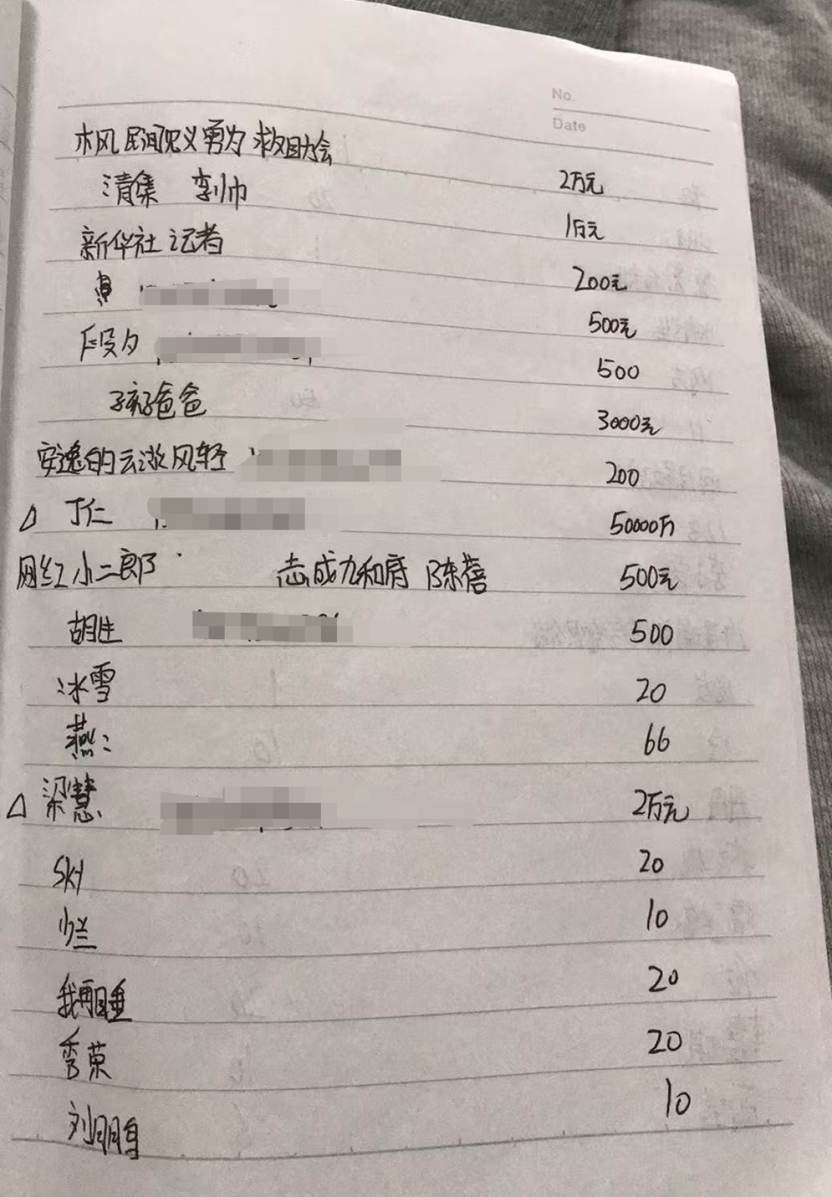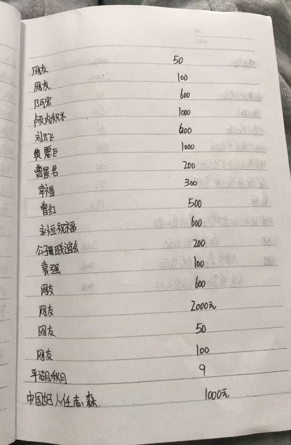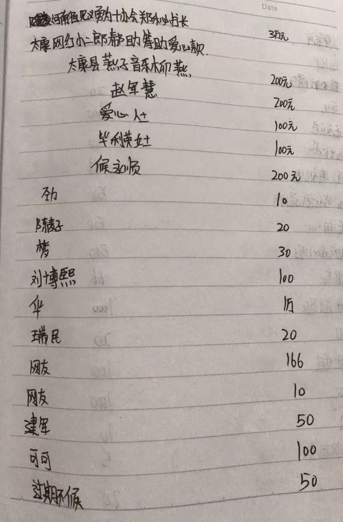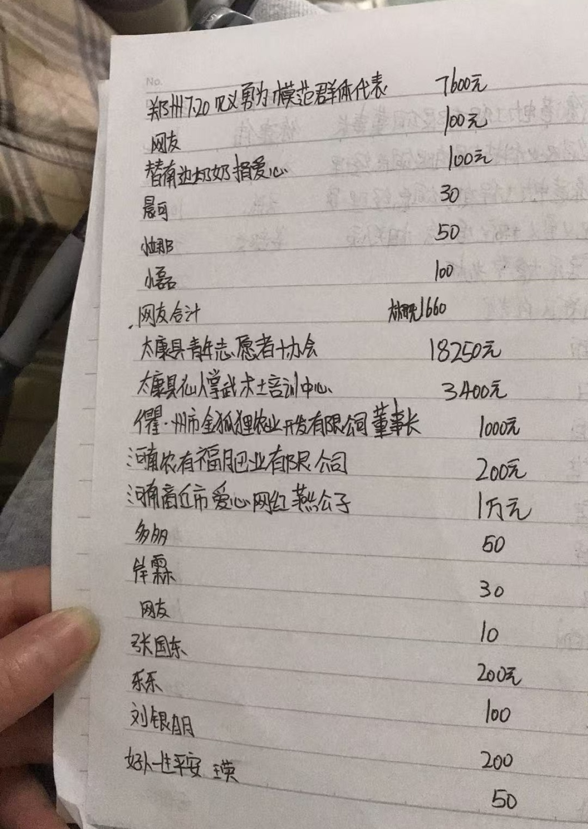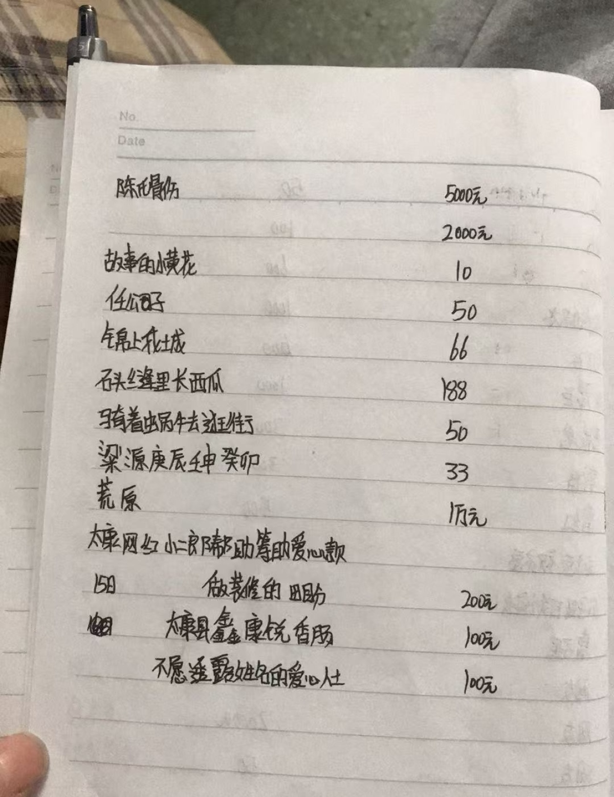 每份捐款都记在了本上
