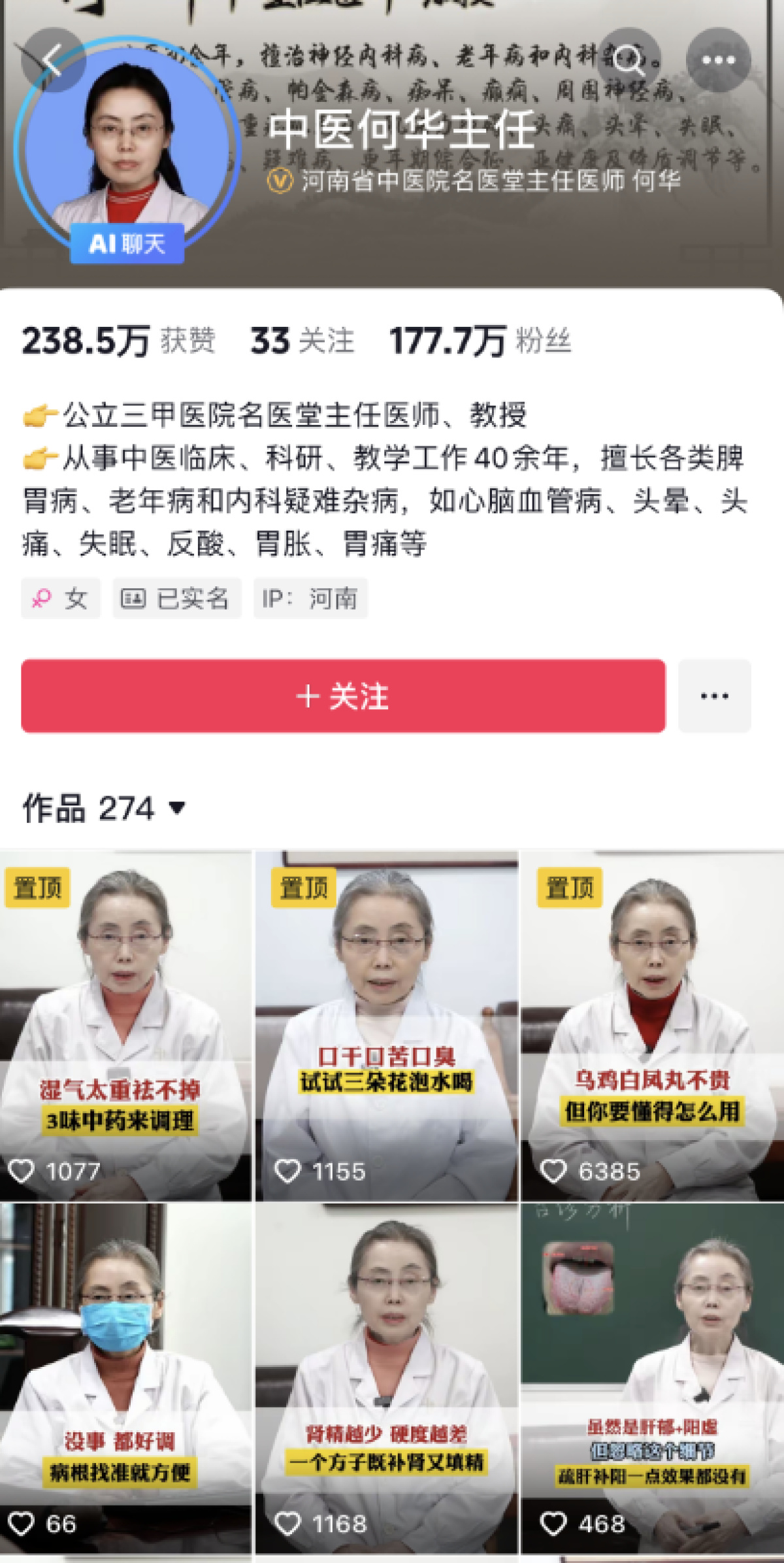 而流量也带来了更多的“慕名患者”。成为“大V”后,何华发现,她的诊室里出现了越来越多来自外地的患者。他们有的是在短视频平台上看到了何华的视频,觉得自己的症状与视频里描述的很相似,于是就直接挂号赶来河南找她看病。