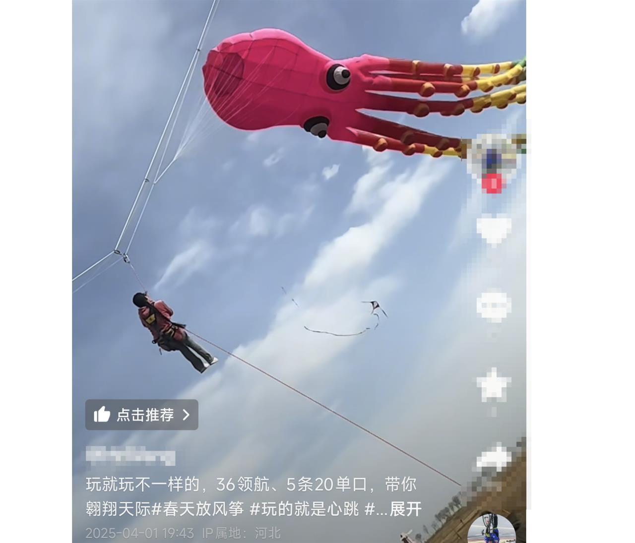石家庄有巨型风筝“带人飞天”,目击者:有10多人协作,最后安全落地