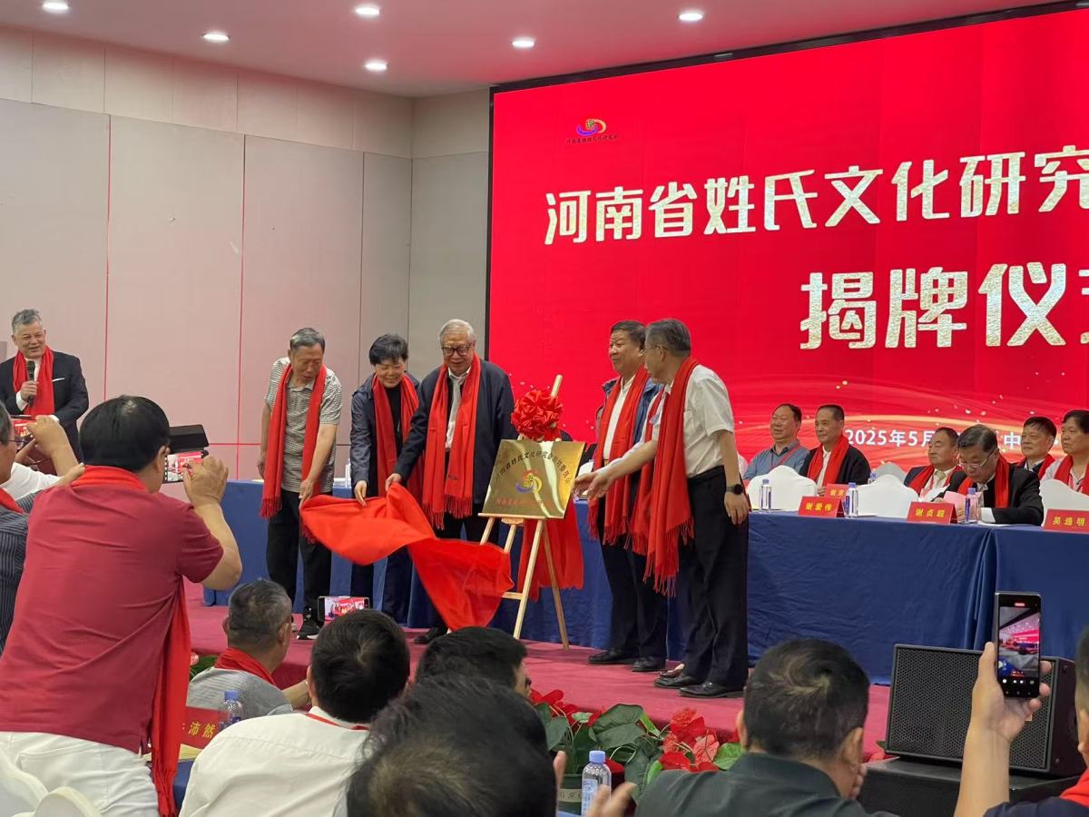 会上,张训彩、林宪斋、谢爱伟、詹玉荣、谢海洋与谢姓委员会首任会长谢亚伟共同为河南省姓氏文化研究会谢姓委员会揭牌!