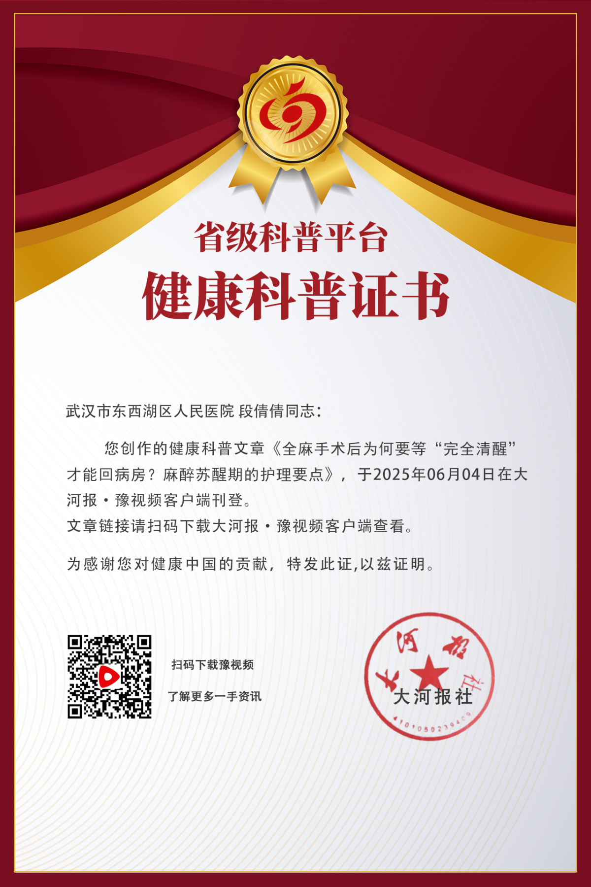 段倩倩:全麻手术后为何要等“完全清醒”才能回病房?麻醉苏醒期的护理要点