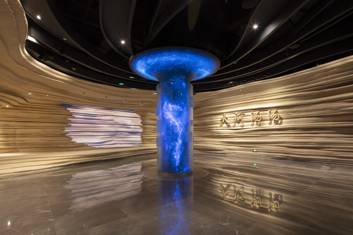 为更好地向公众展示、诠释仰韶时期先民生态环境和生产、生活场景及创造的灿烂远古文化,新馆设置了“仰韶印象”沉浸式数字化展项,面积600余平方米。展览形式以沉浸式实景游览和数字主秀体验相结合,综合运用了当前前沿的场景塑形、接景、3D Mapping(结构投影)、幻影成像、动作捕捉、机电一体化、数码灯效、dts360°全景声效等技术,打造了8幕不同的沉浸式多幕全息场景。综合展示仰韶时期的生存环境、农业、畜牧业(家畜饲养)、手工业(烧造陶器、打磨石器、纺织)、筑房技术、捕捞和渔猎等内容,使晦涩难懂的信息以直观易懂的方式呈现,使仰韶文化真正地“活”起来。