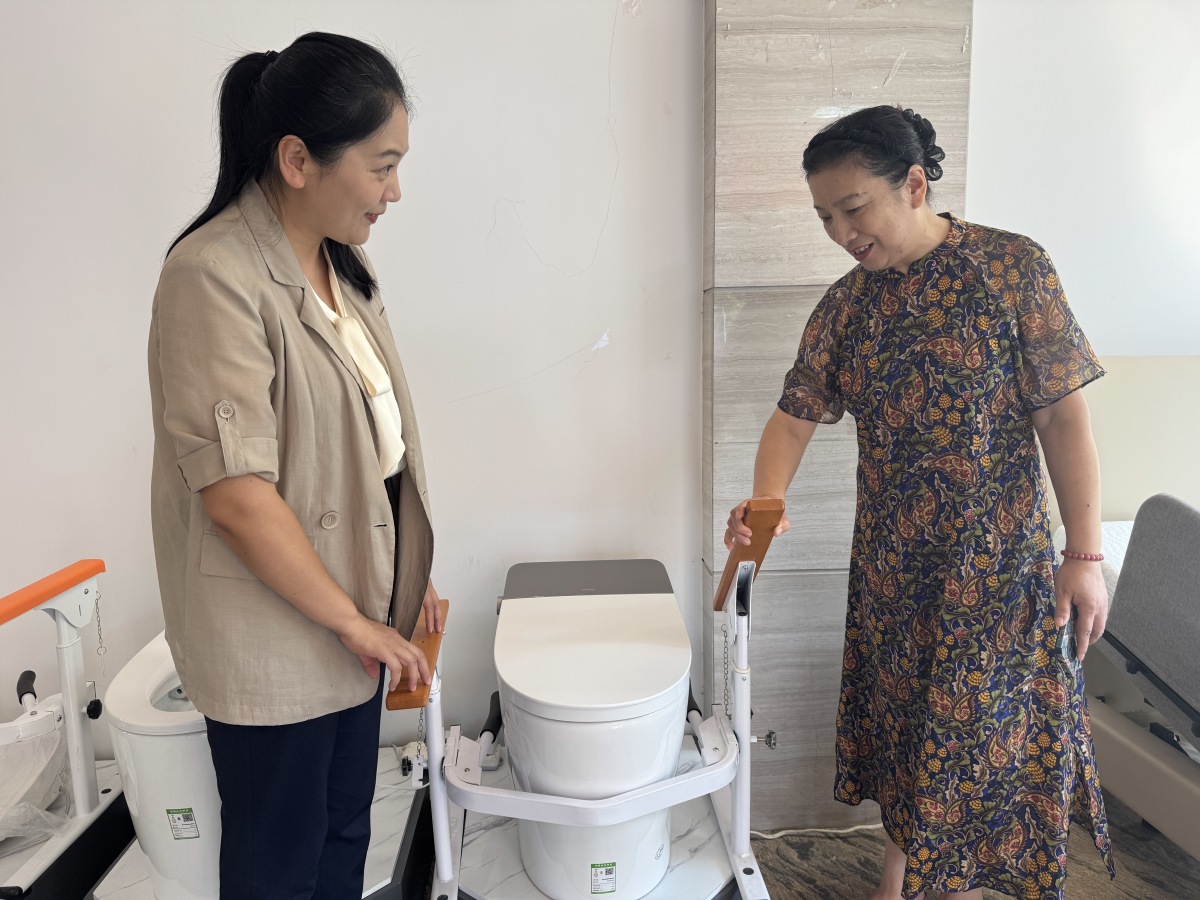 在天地湾康养中心适老店中,记者也见到了多位负责解答疑问的河南康养集团工作人员。他们详细地教孙美娥如何安装使用这一便捷款马桶扶手。