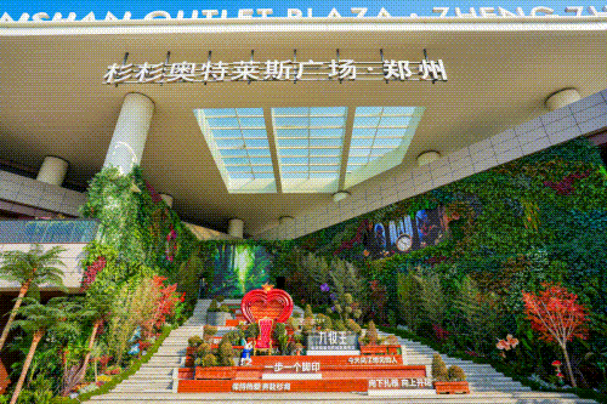 近日,记者来到中牟杉杉奥莱,刚踏入街区便被满满的生机裹住。错落分布的大型鲜花绿植景观与暖色调建筑相映成趣,步道边的游客闲聊休憩、孩童追逐玩耍——原本的购物动线,竟成了逛公园般的惬意旅程。