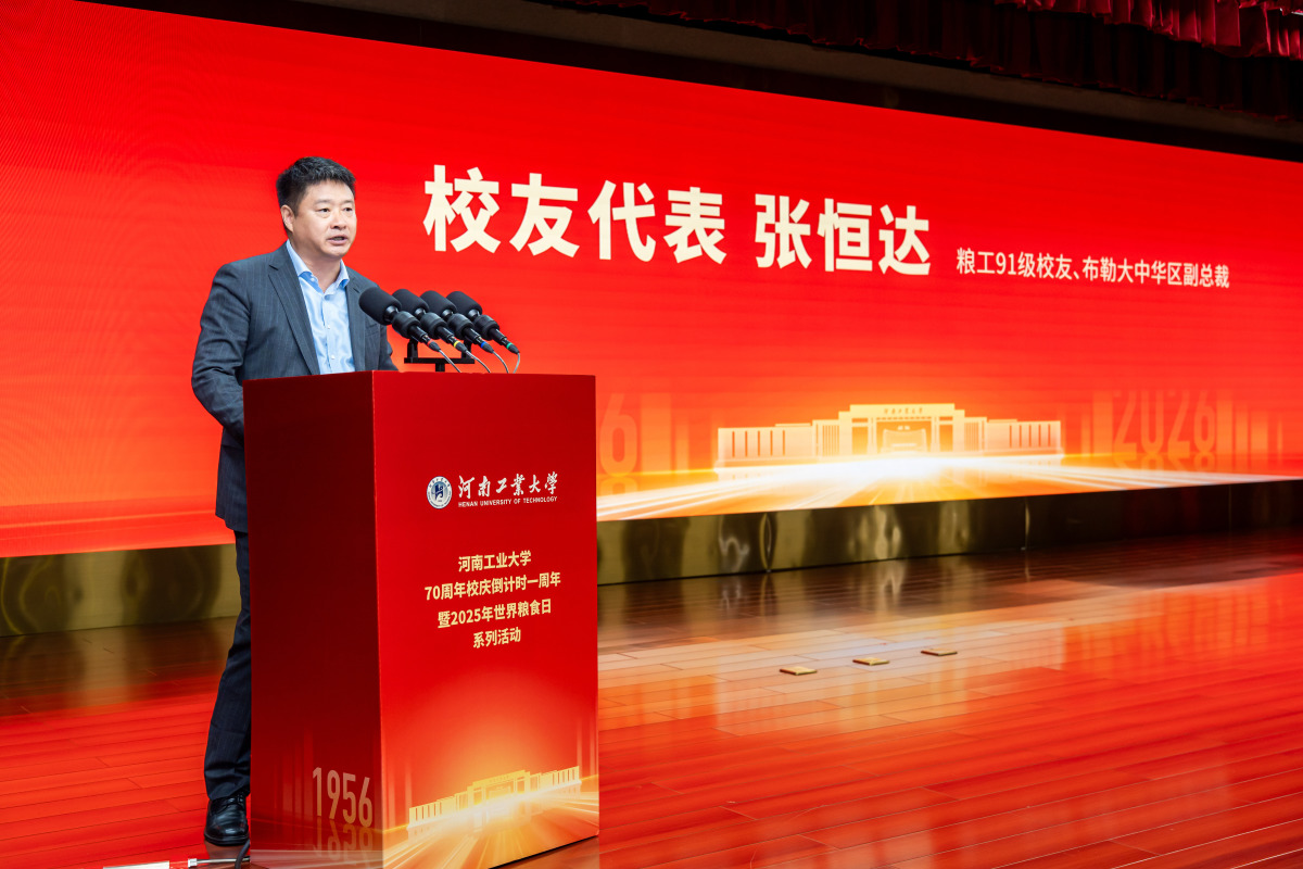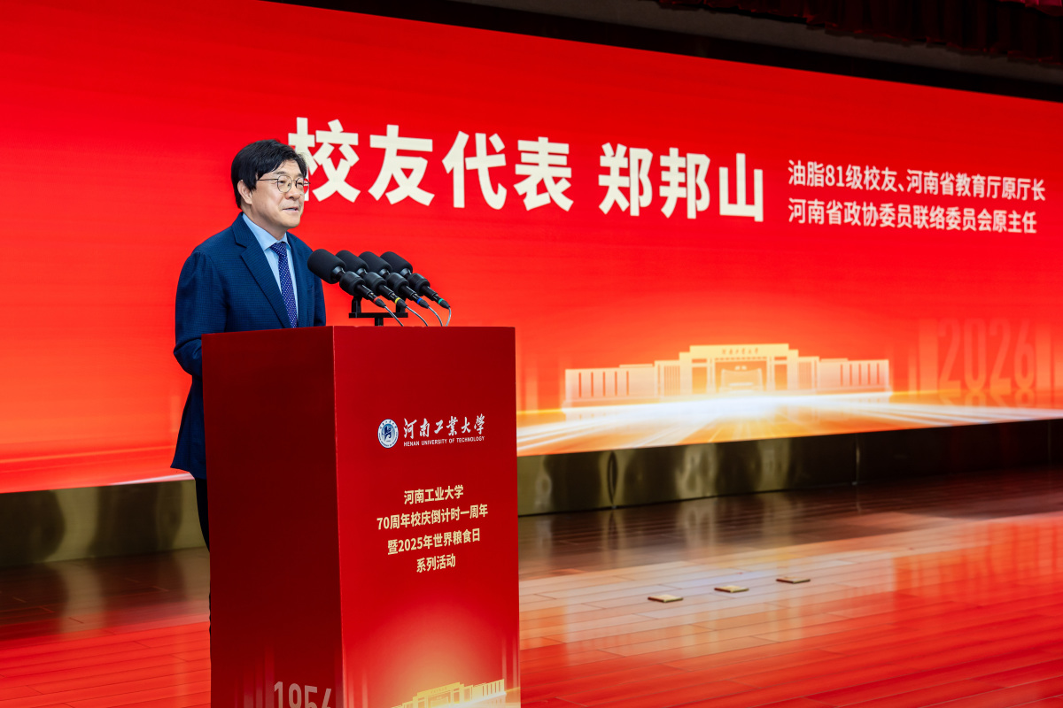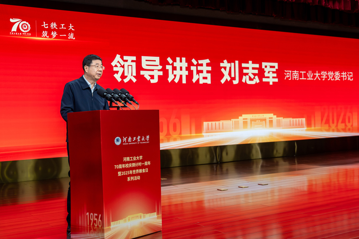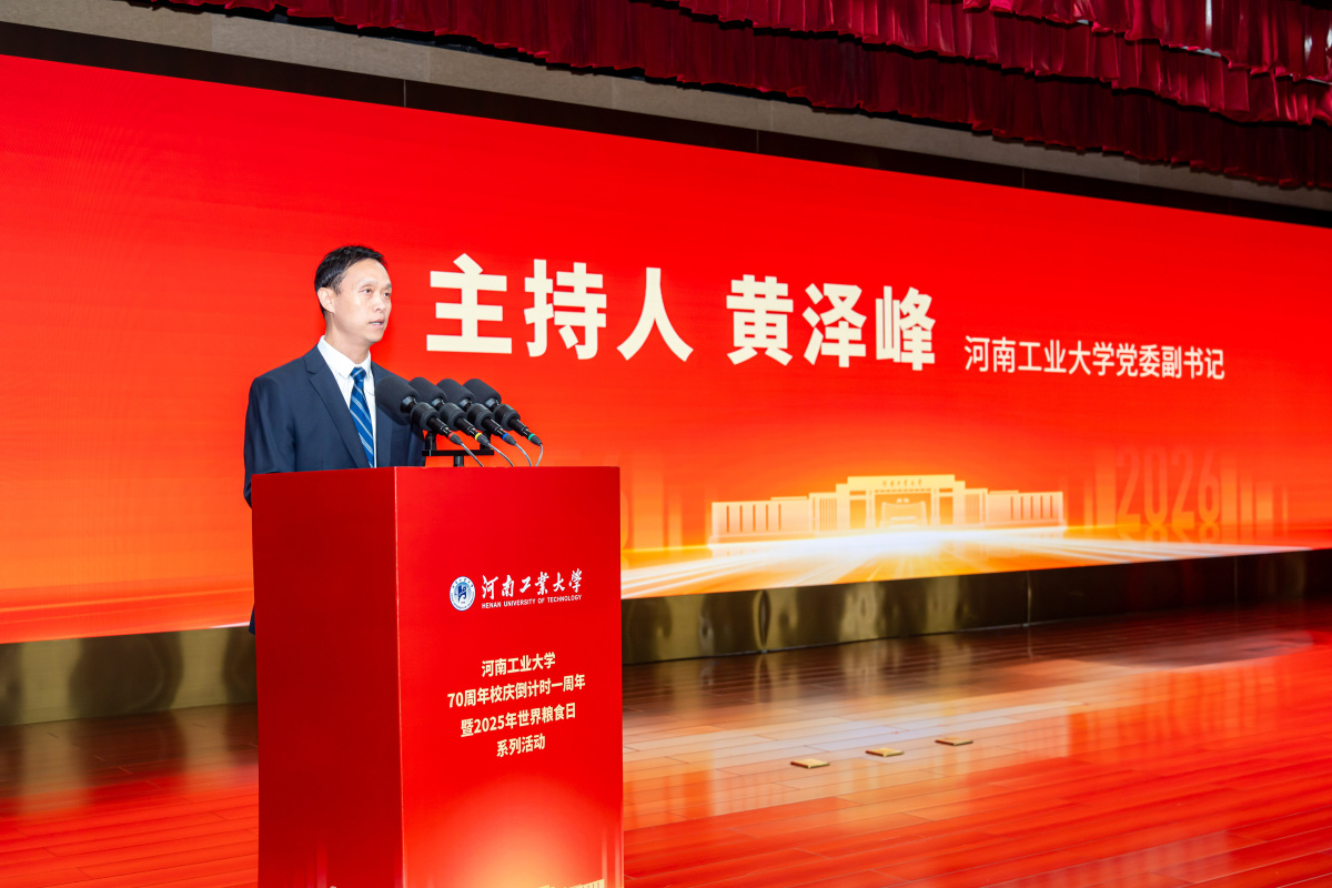 “河南工业大学70周年校庆倒计时一周年暨2025年世界粮食日系列活动”在此举行。全体在校校领导、特邀嘉宾、中层干部、离退休老同志、师生代表齐聚一堂,共同见证这一重要时刻。