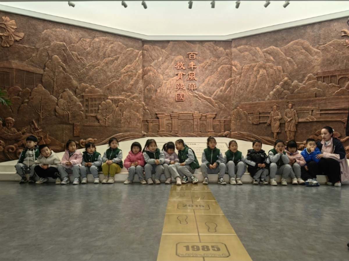 “踩脚印啦!我们要回到学校‘小时候’啦!”随着一声欢呼,“时光穿越”环节拉开序幕。萌娃们牵着小伙伴的手,踩着印有关键年份的彩色脚印一步步向前,小嘴巴里不停念叨:“1923,学校是不是这个时候出生的呀?”“1956 年,它是不是换了新名字?”有孩子突然停下脚步,仰着小脸对讲解员姐姐说:“原来学校比爷爷的年龄还大!”简单的脚步与童言,让百年校史的时间线在孩子心中悄然萌芽。