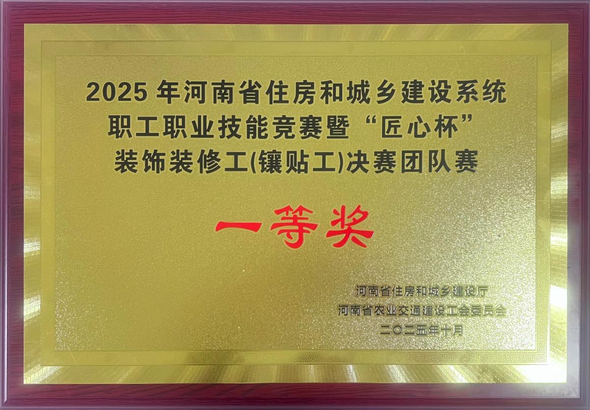 喜报|国基建工集团问鼎2025年河南省“匠心杯”装饰装修工(镶贴工)决赛团队赛一等奖,以精工实力诠释大国工匠精神