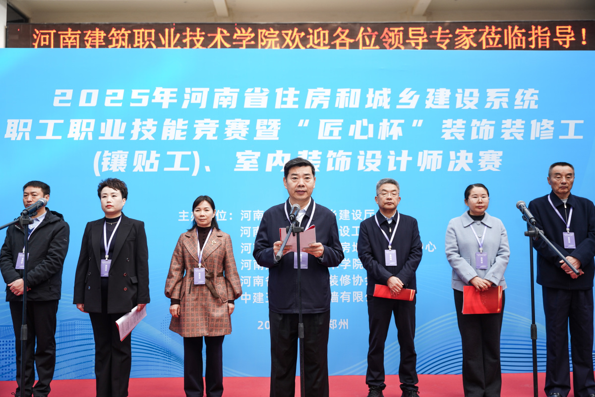 10月26日,由河南省住房和城乡建设厅、河南省农业交通建设工会委员会联合主办,河南省住房保障和房地产业发展中心承办的“2025年河南省住房和城乡建设系统职工职业技能竞赛装饰装修工(镶贴工)、室内装饰设计师决赛”,在河南建筑职业技术学院圆满落下帷幕。这场赛事不仅是河南省住建领域职业技能水平的“巅峰对决”,更是行业精英切磋技艺、传承匠心的重要平台,吸引了全省各地优秀企业代表队同台竞技,共同展现新时代产业工人的精湛技能与职业风采。