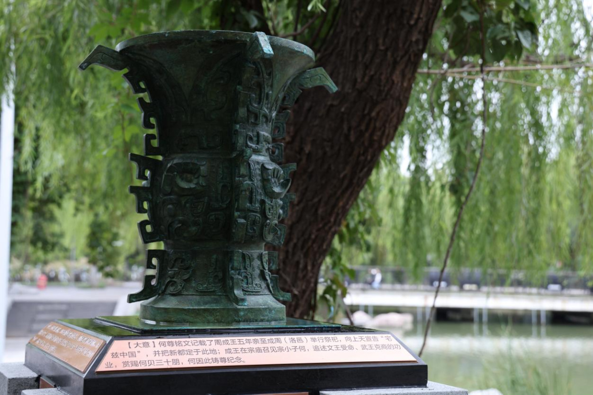 沿眉湖东岸延伸的“字润华夏”主题区展示了汉字在不同载体上的应用及文化内涵:从铭刻“武王征商”的利簋,到首次出现“中国”一词的何尊;从吴越兵器上精美神秘的鸟虫书,到战国中山王鼎上镌刻家国箴言的悬针篆;从楚地帛书的浪漫想象,到秦简汉隶的规矩方圆……汉字在不同载体上的形态流变与其承载的厚重历史,勾勒出中华文明发展的宏阔轨迹。