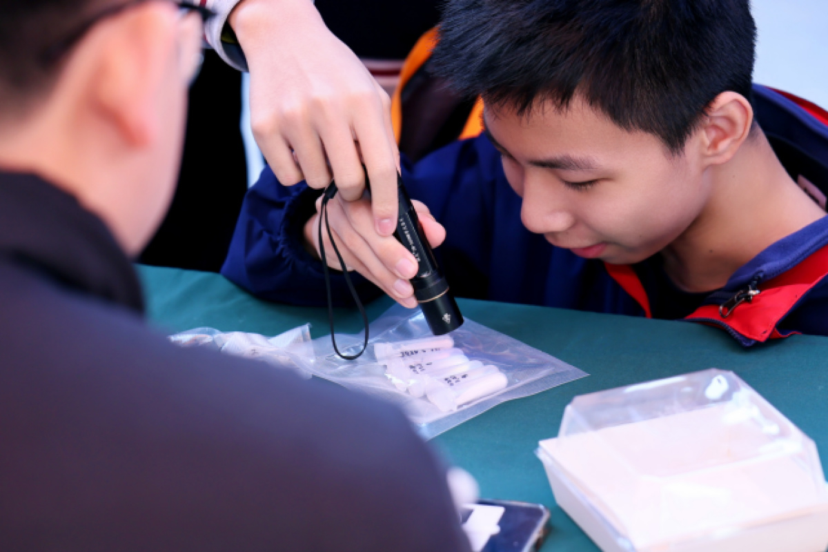 除了精美的科技作品,活动现场还设置了“挑战科学家”“基地奇妙游”“物理知识头脑风暴”“动手实践工坊”等特色科普项目。和“牛顿”“爱因斯坦”一决高下,在全国科普教育基地—物理国家级实验教学示范中心实践学习,从智慧树上摘下“智果”写出答案,自己动手操作示波器、激光琴、电磁炮、辉光球等实验仪器……在沉浸式体验中探索物理之美,畅游知识海洋。