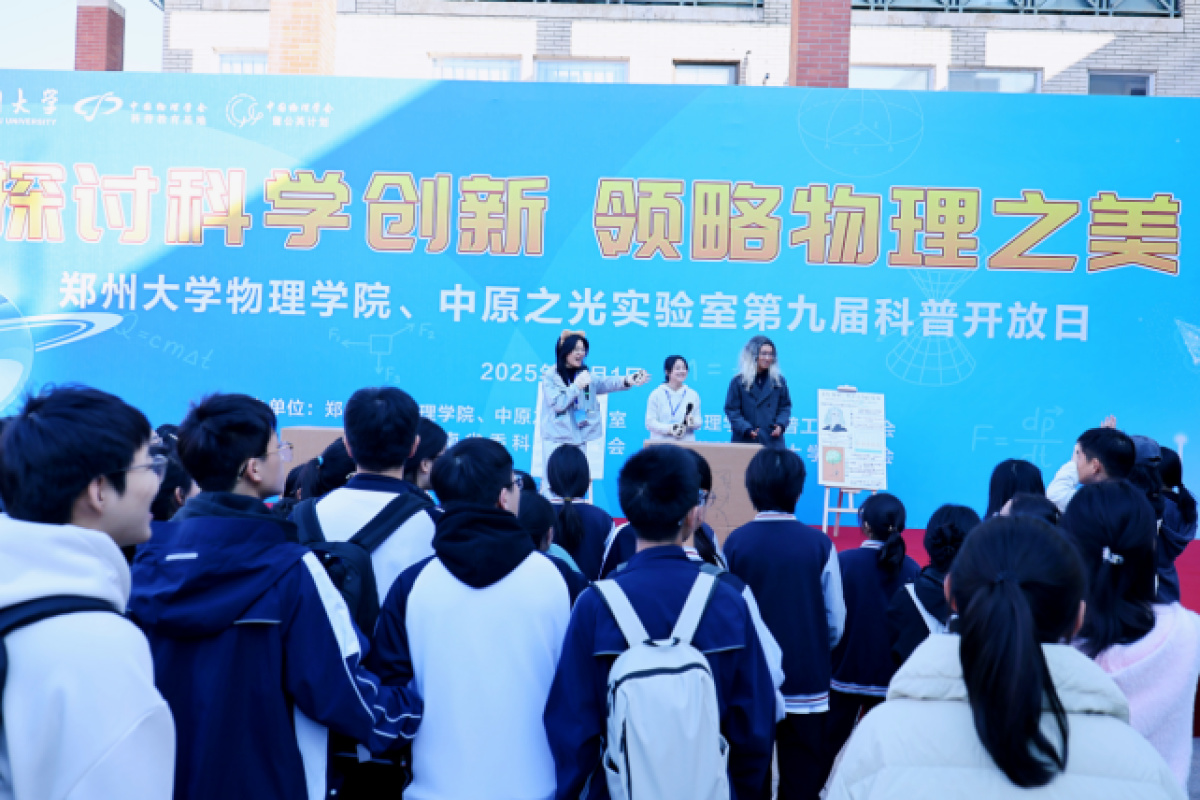 11月1日,由郑州大学物理学院、中原之光实验室主办,中国物理学会科普工作委员会、九三学社河南省委科技委员会、九三学社郑州大学委员会协办的第九届科普开放日活动成功举办。河南省科学技术协会党组成员、副主席郝立新,河南省科学技术协会科普部副部长王力,郑州大学副校长单崇新出席开幕式。