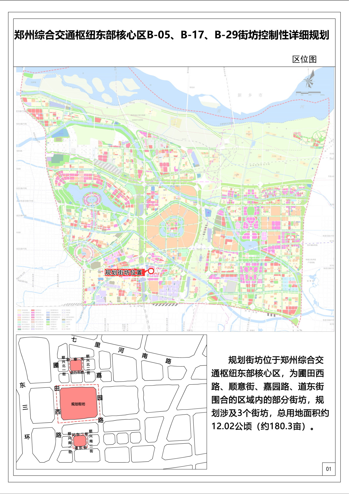 近日,记者从郑东新区管委会获悉,这一备受关注的项目迎来关键进展——11月26日,《郑州综合交通枢纽东部核心区B-05、B-17、B-29街坊控制性详细规划》正式进入批前公示阶段。
