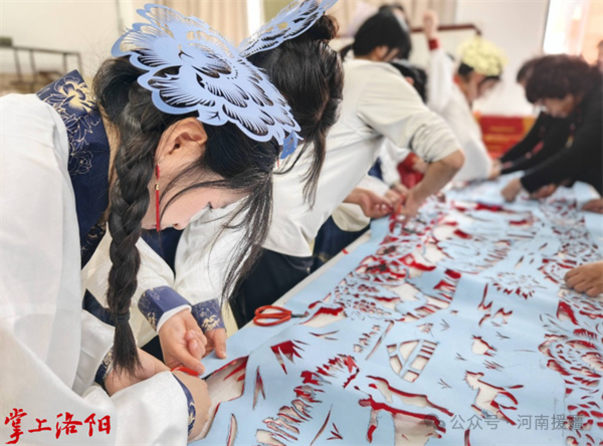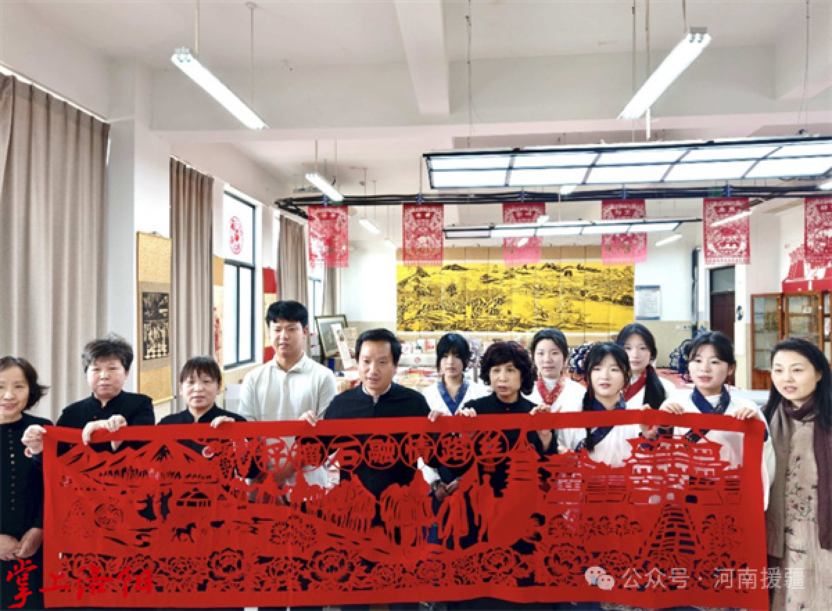 巧指翻、剪刀舞、纸花扬……19日,在洛阳职业技术学院“王飞大师工作室”里,随着十多位创作者落下最后一剪,一幅名为《丝路情融石榴籽》的3米剪纸长卷圆满完成,惊艳亮相。
