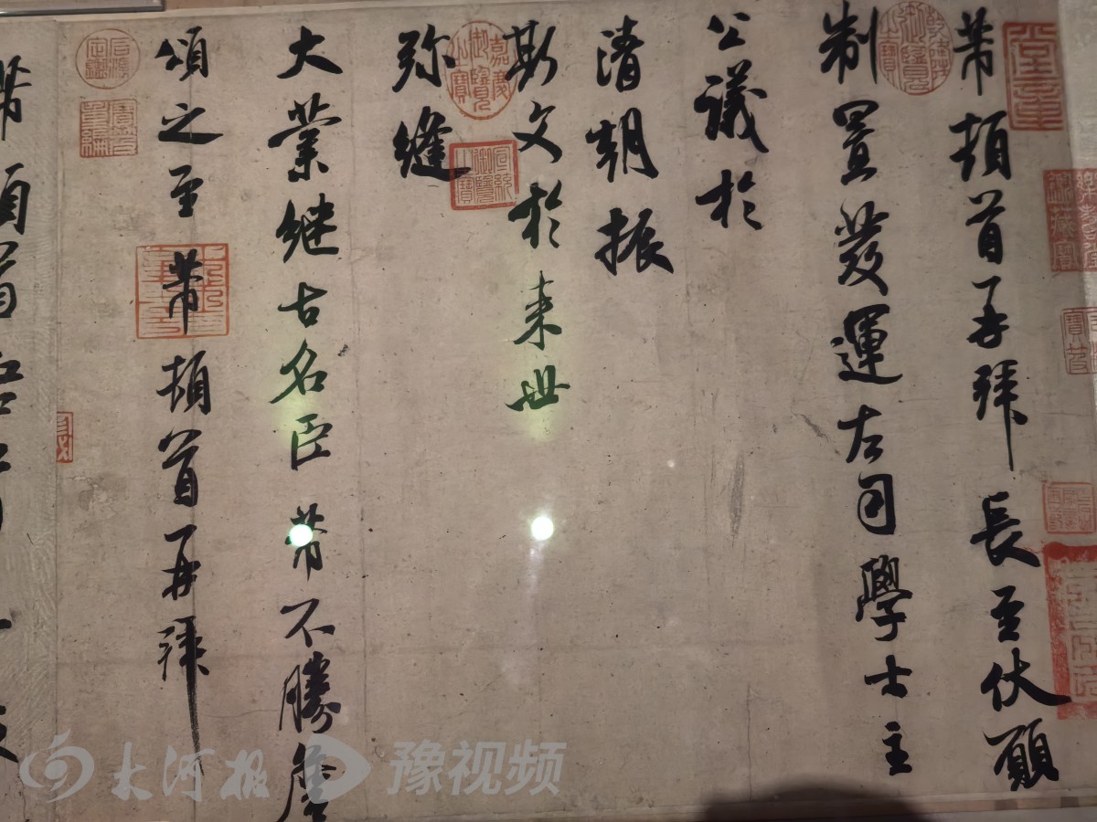 12月28日晚,最早针对展品提出疑问的书法爱好者大雨廔告诉大河报《看见》记者,他于12月27日参观展览时发现,米芾《行书三札卷》未使用侧光照明,而其他展品均有侧光;且经与故宫博物院官网公开的米芾《行书三札卷》照片对比,个别字迹墨色的深浅不一样。此外,该展品后面王铎的题跋未展示,无法进行进一步比对。