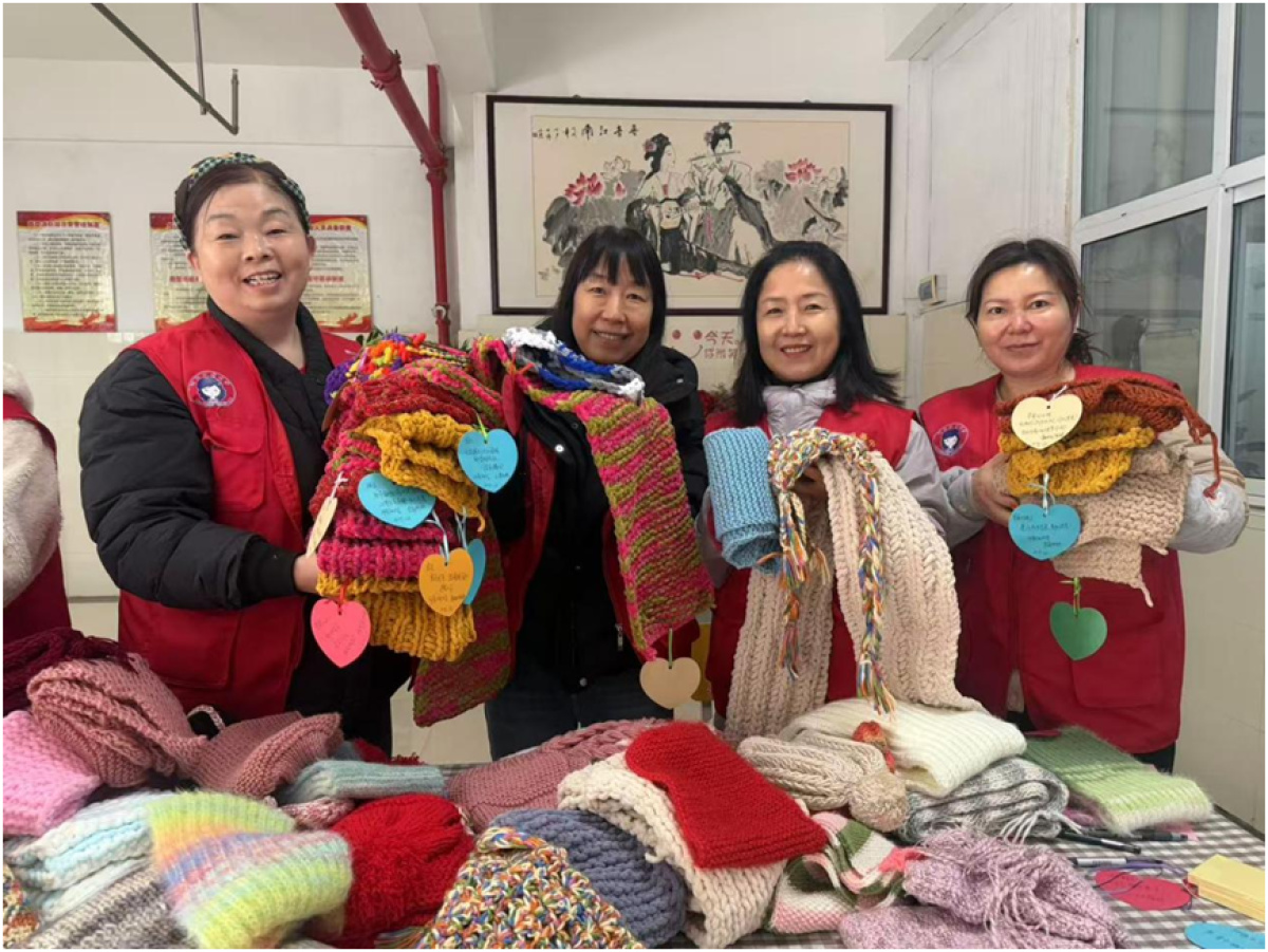 随后,一行人来到冠军村小学,把工大“宿妈”利用业余时间亲手编织了上百条围巾、帽子、手套等御寒物品发给学生,当孩子们拿到标有“宿妈”爱心寄语的漂亮礼物时,情不自禁地欢呼、激动兴奋地展示、迫不及待地穿戴,现场顿时化作一片欢乐的海洋,孩子们纯真的笑脸在冬日的阳光下格外灿烂。