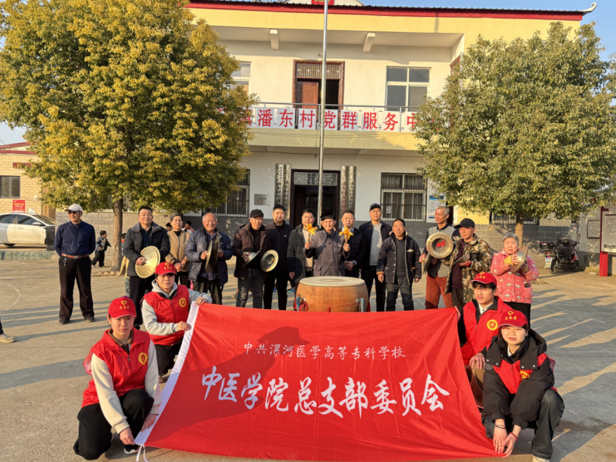 为弘扬中华优秀传统文化,助力乡村振兴战略落地见效,2025年12月27日下午,漯河市郾城区孟庙镇潘东村驻村工作队特邀漯河医学高等专科学校(简称“漯河医专”)中医学院师生走进村落,开展文化传承与中医健康科普交流活动,为当地村民带来一场兼具文化韵味与健康价值的午后盛宴。