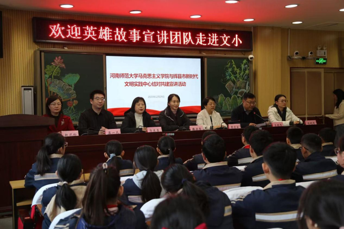 据悉,河南师范大学马克思主义学院始终深耕理论传播与校地协同育人,依托博士教授理论宣讲团、“理响中原”大学生党员宣讲团和“红孩子学校”红色故事巡讲团,精心打造校地共建志愿服务体系,与辉县市新时代文明实践指导中心完成签约共建,打磨28节精品课程,深入社区、乡村、学校开展分众化、场景化宣讲20余场,覆盖3000余人,实现理论传播与实践育人双向赋能。