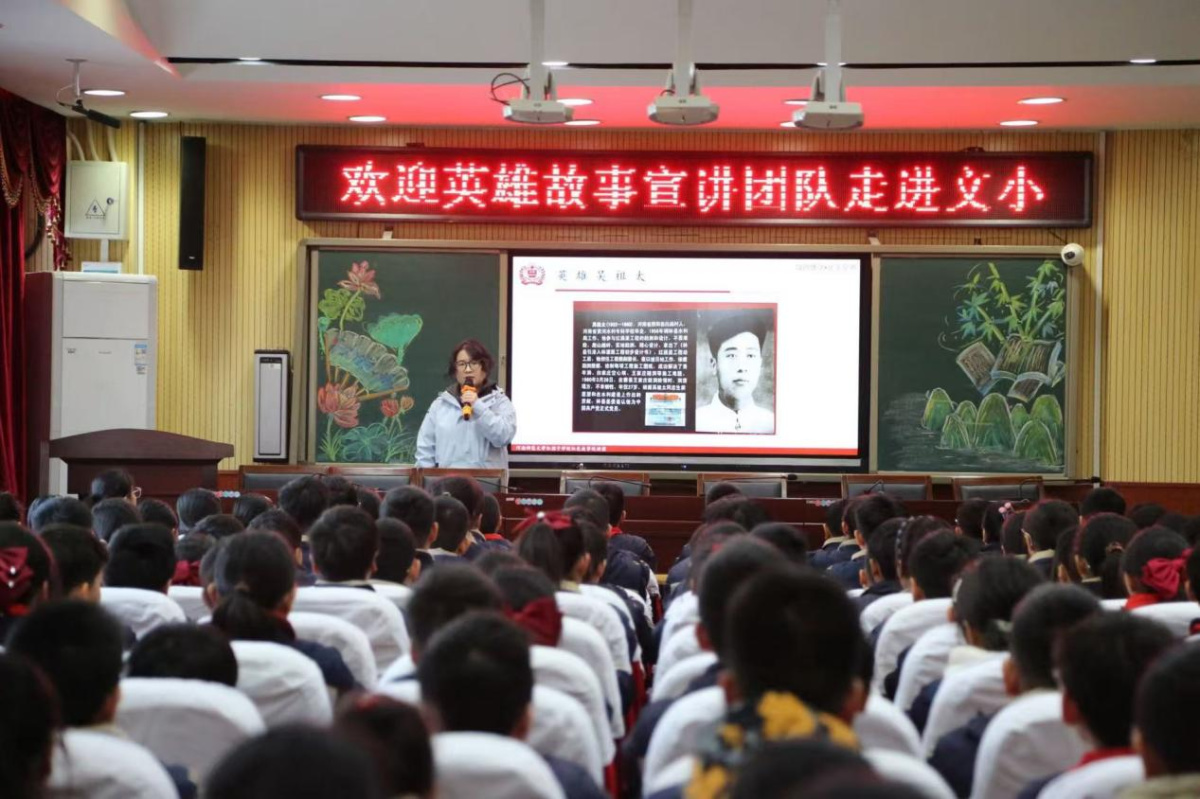 活动中,河南师范大学马克思主义学院“红孩子学校”宣讲团成员2022级本科生董怡君、马沂聪,先后带来《巍巍太行英雄丰碑》《铁血将军董振堂》的主题分享,以吴祖太、董振堂等英雄人物的鲜活事迹为蓝本,用小学生听得懂的语言勾勒英雄群像,为孩子们立起精神标杆。